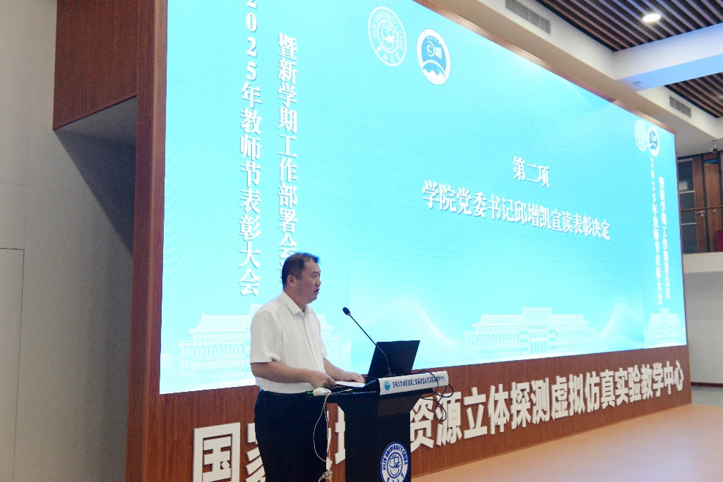 2025年9月9日上午9时,suncitygroup太阳成集团在朝阳校区国家地质资源立体探测虚拟仿真实验教学中心召开2025年教师节表彰大会暨新学期工作部署会议。公司全体教职工参加会议,会议由行政副经理朱宇主持。
