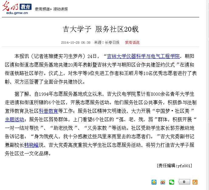 1.光明网 《吉大学子 服务社区20载》