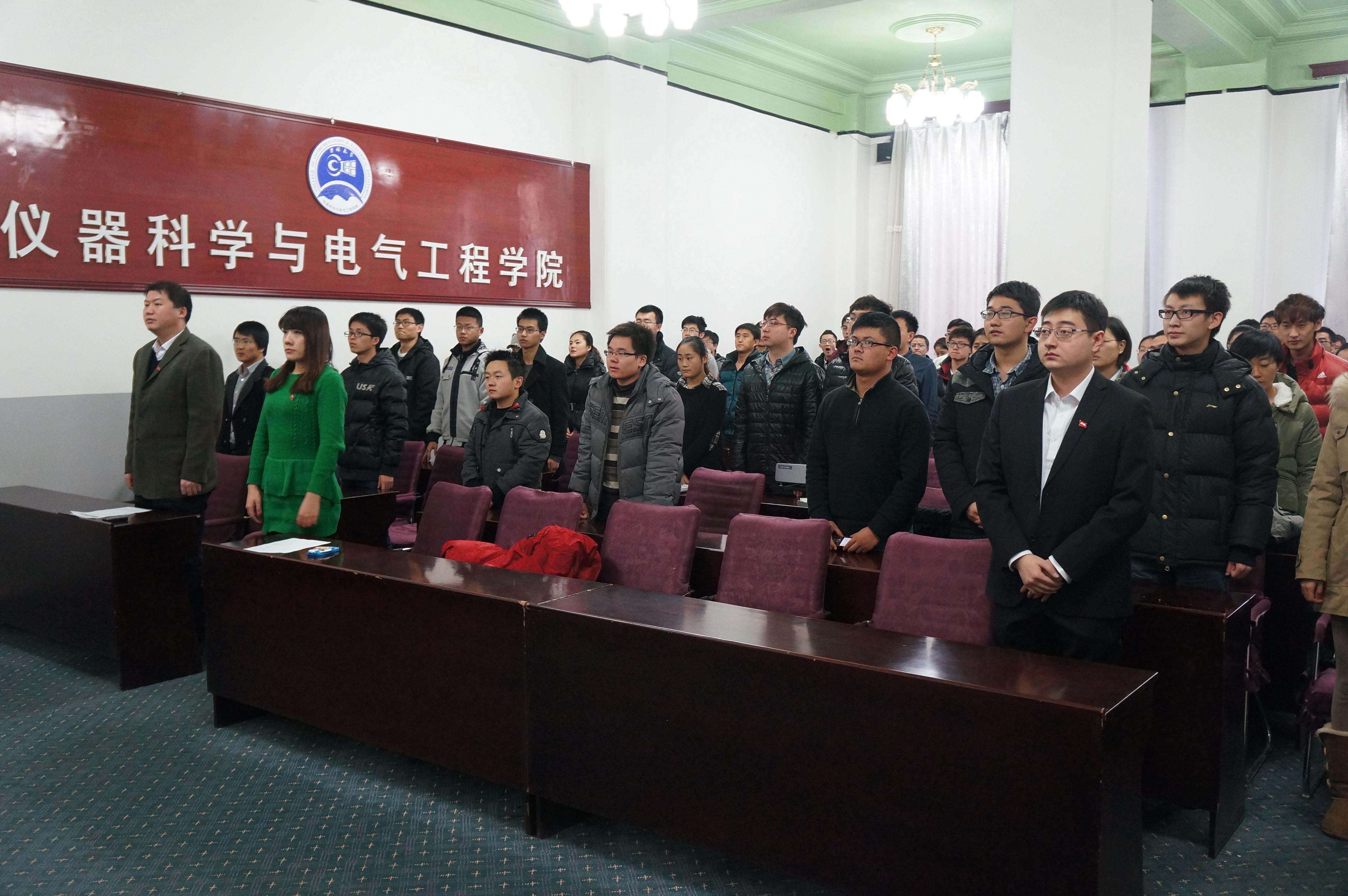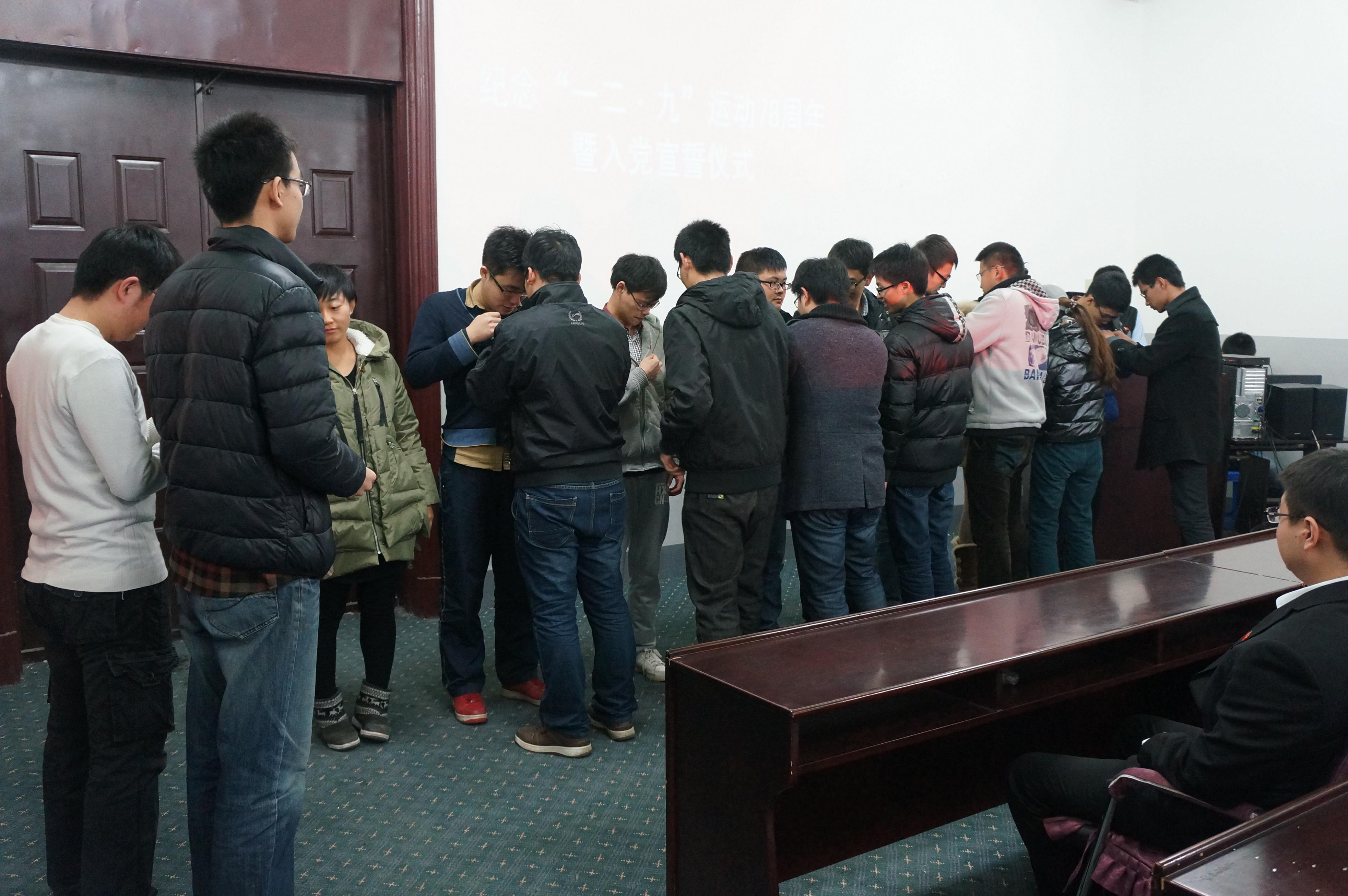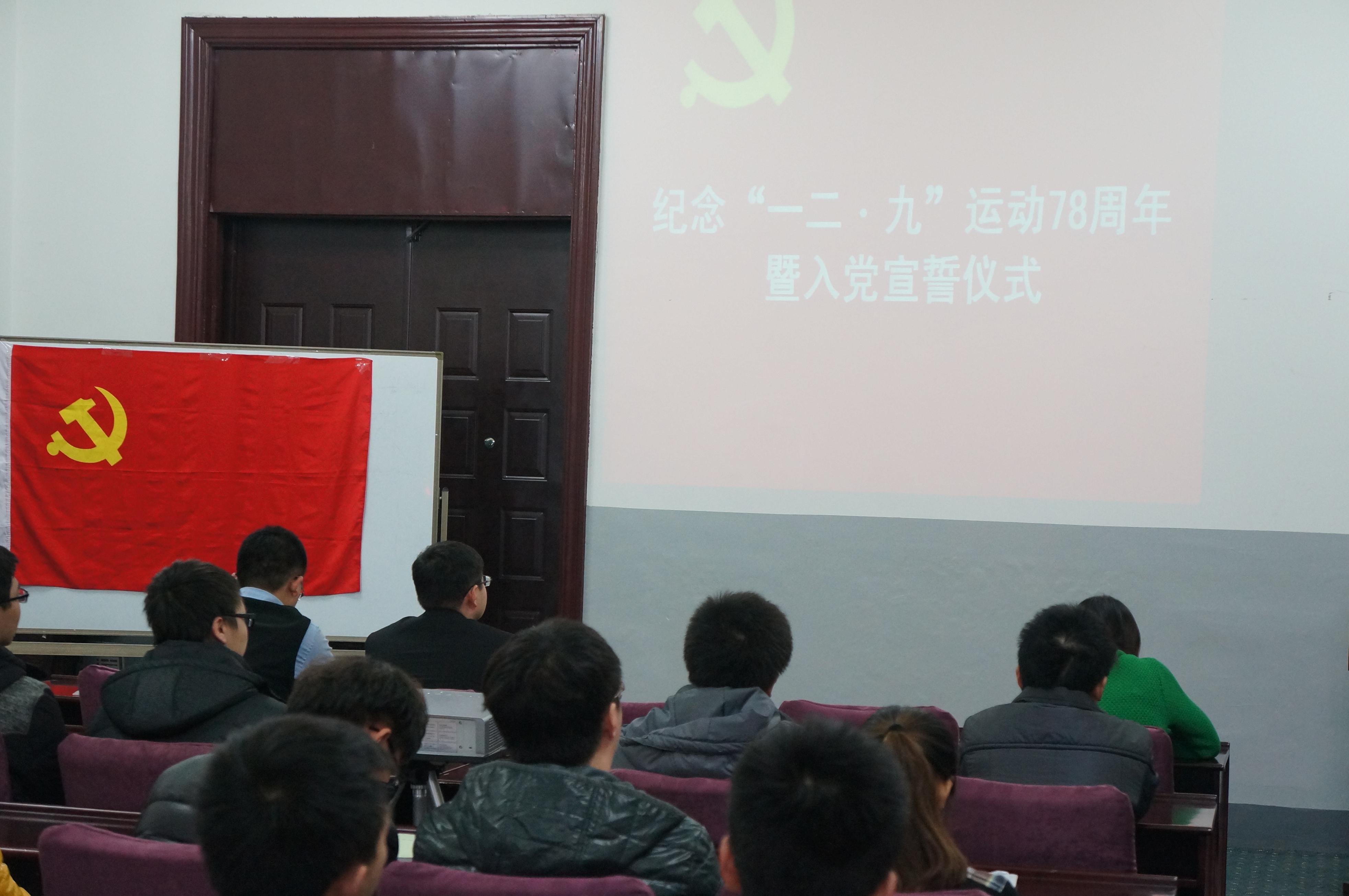 为深入学习贯彻党的十八大精神,深刻纪念“一二•九”员工爱国运动78周年,加强对全体党员的党性教育,激励全体党员认真践行入党誓言,suncitygroup太阳成集团于2013年12月9日中午12:30在朝阳校区地质宫208室举行了纪念“一二•九”爱国运动78周年暨入党宣誓仪式。仪器科学与电气工程公司党委副书记兼副经理邱增凯、院员工工作办公室王冕、院团委书记兼本科生党支部书记朱宇,院团委副书记蔡印出席了此次仪式。公司本科生党支部全体党员、入党积极分子及9名新发展的党员参加了此次仪式,仪式由院团委书记兼本科生党支部书记朱宇主持。