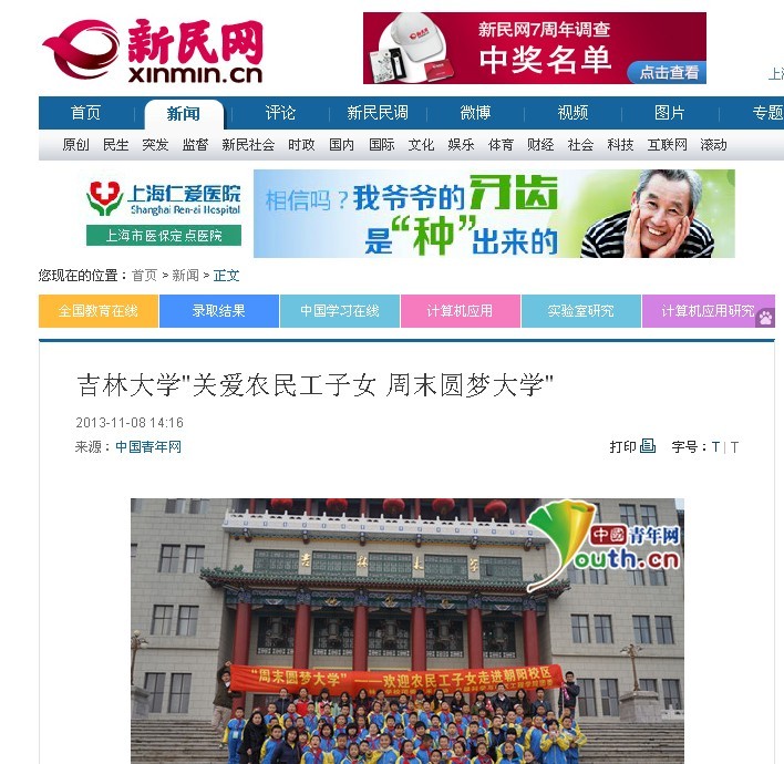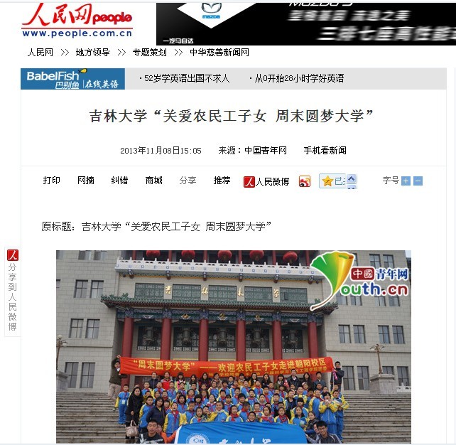 1、人民网 全文转载《suncitygroup太阳成集团“关爱农民工子女周末圆梦大学” 》