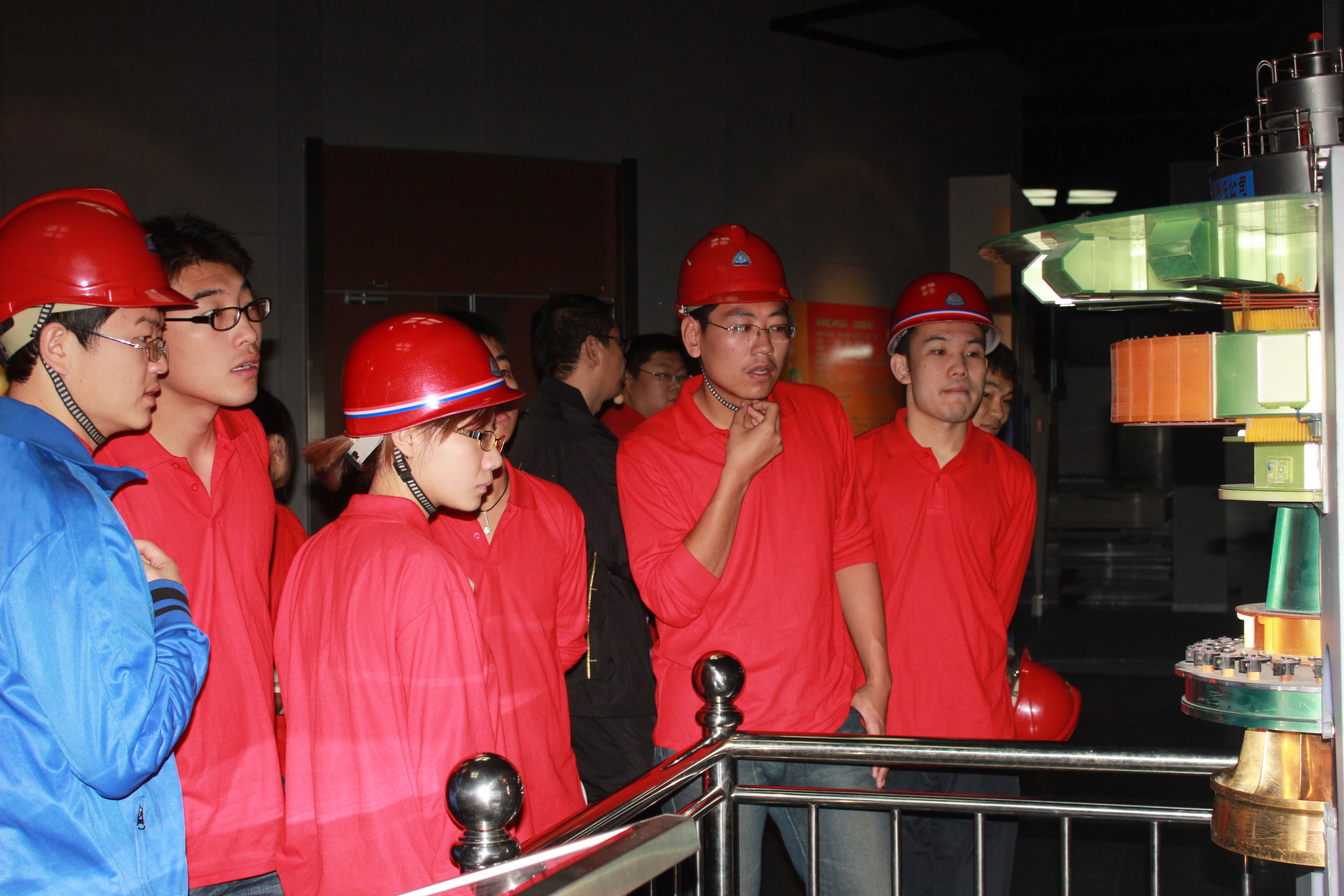 参观实习之前,电厂的技术人员在会议室给同学们介绍了水电站下属的部门、工作内容以及相应的设备和技术指标。随后,同学们在解说员的带领下参观了丰满水电站博物馆,通过解说员的讲解,同学们了解了水电站从最初的设计、施工到建成以及后期改造各个详尽的过程,在解说中,仿佛亲身经历了水电站的每一个变化。之后的模型参观以及发电机组参观,使同学们更为直观地接触了水电站的设备以及它们的工作方式,同学们对眼前的这些庞然大物显得格外感兴趣。