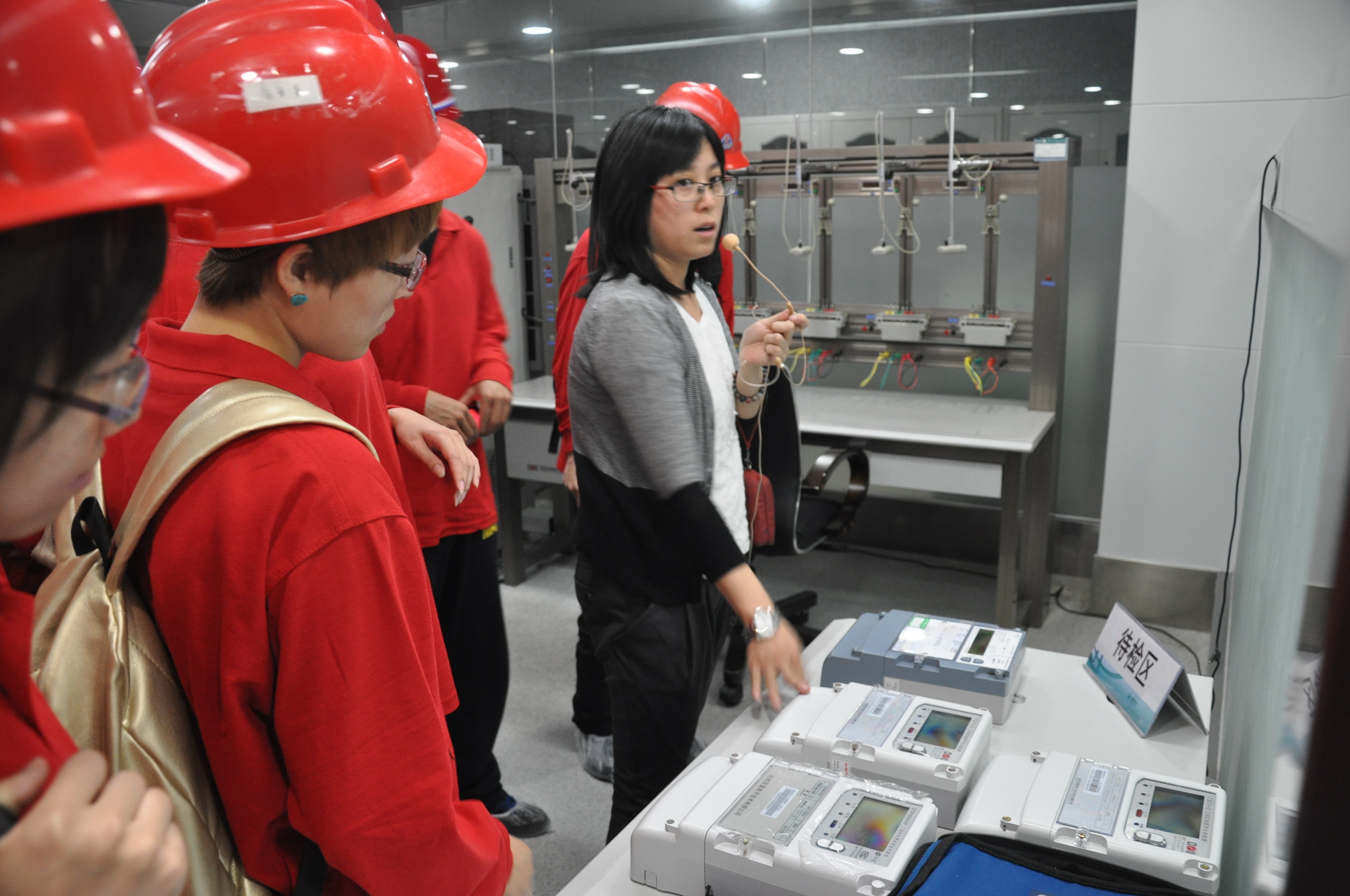 气氛热络的会议室交流后,同学们又参观了高电压实验室,面对着巨型的高电压试验设备,同学们叹为观止。之后的计量实验室,更让同学们接触到了比较前沿的电气设备和测量设备,这些公司难得一见的设备让同学们大开眼界,兴奋异常,参观实习确实不虚此行。