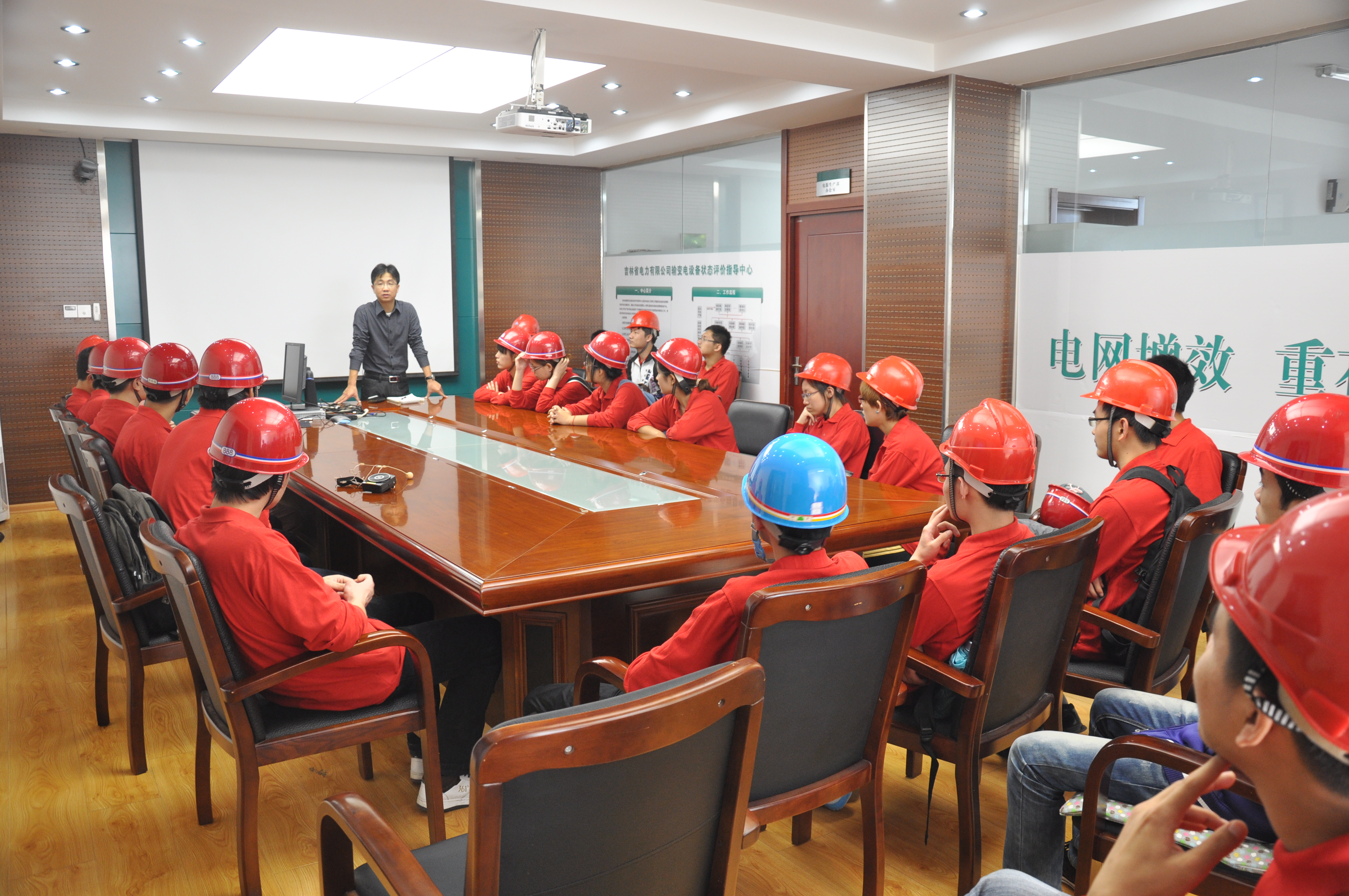201295日下午一时三十分,在suncitygroup太阳成集团电气工程及其自动化系主任嵇艳鞠老师的带领下,电气系09级同学来到吉林省电力科公司进行参观实习,陪同参观的有仪电公司的王永志老师、郑凡老师和2009级员工辅导员刁庶老师。