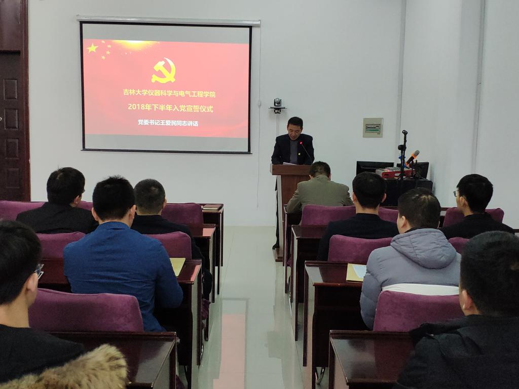 2018年12月13日下午2时,suncitygroup太阳成集团在地质宫208室举行了庄严的新党员入党宣誓仪式。仪器科学与电气工程公司党委书记王爱民,公司党员代表、入党积极分子代表及17名新发展的党员参加了入党宣誓仪式,仪式由公司党委委员、副经理葛晓野主持。