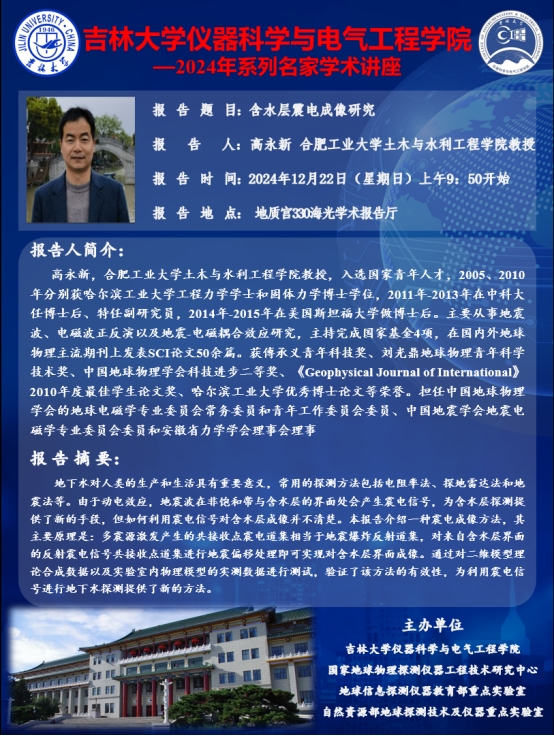 2024年系列名家学术讲座——高永新 合肥工业大学土木与水利工程公司教授