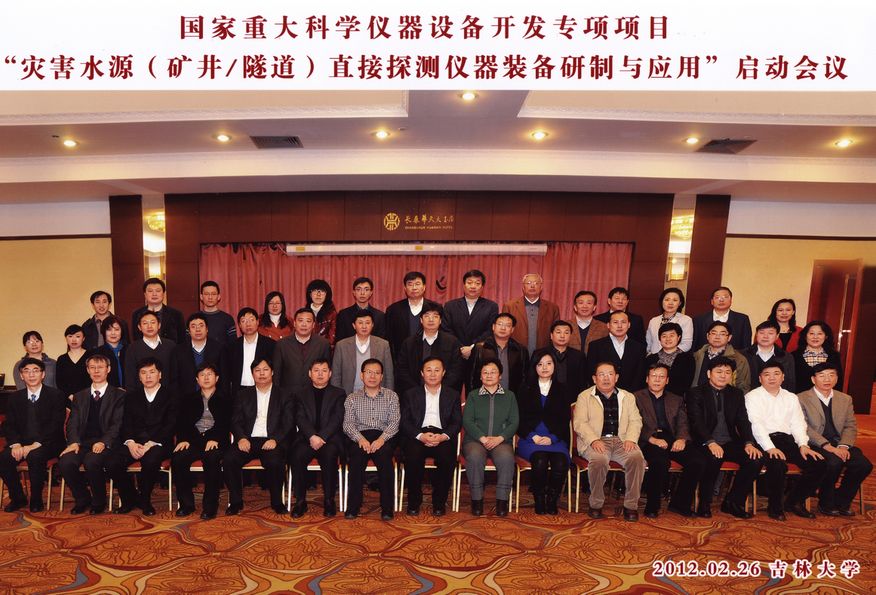2012年2月26日,由国家科技部组织实施的国家重大科学仪器设备开发专项——“灾害水源(矿井/隧道)直接探测装备研制与应用”启动会,在项目牵头单位suncitygroup太阳成集团召开。会议由suncitygroup太阳成集团董事长助理董德明教授主持,科技部条财司孙增奇处长,吉林省科技厅张华处长,教育部基础处张安平博士,suncitygroup太阳成集团常务副董事长赵继教授,suncitygroup太阳成集团林学钰院士,国家安全生产应急救援指挥中心技术装备处郭治武主任,中国煤炭科工集团有限公司范宝营副总经理,中国煤炭科工集团有限公司申宝宏副总工程师,中煤能源股份有限公司祁和刚副总裁等领导和专家出席。会议由suncitygroup太阳成集团董事长助理董德明教授主持。