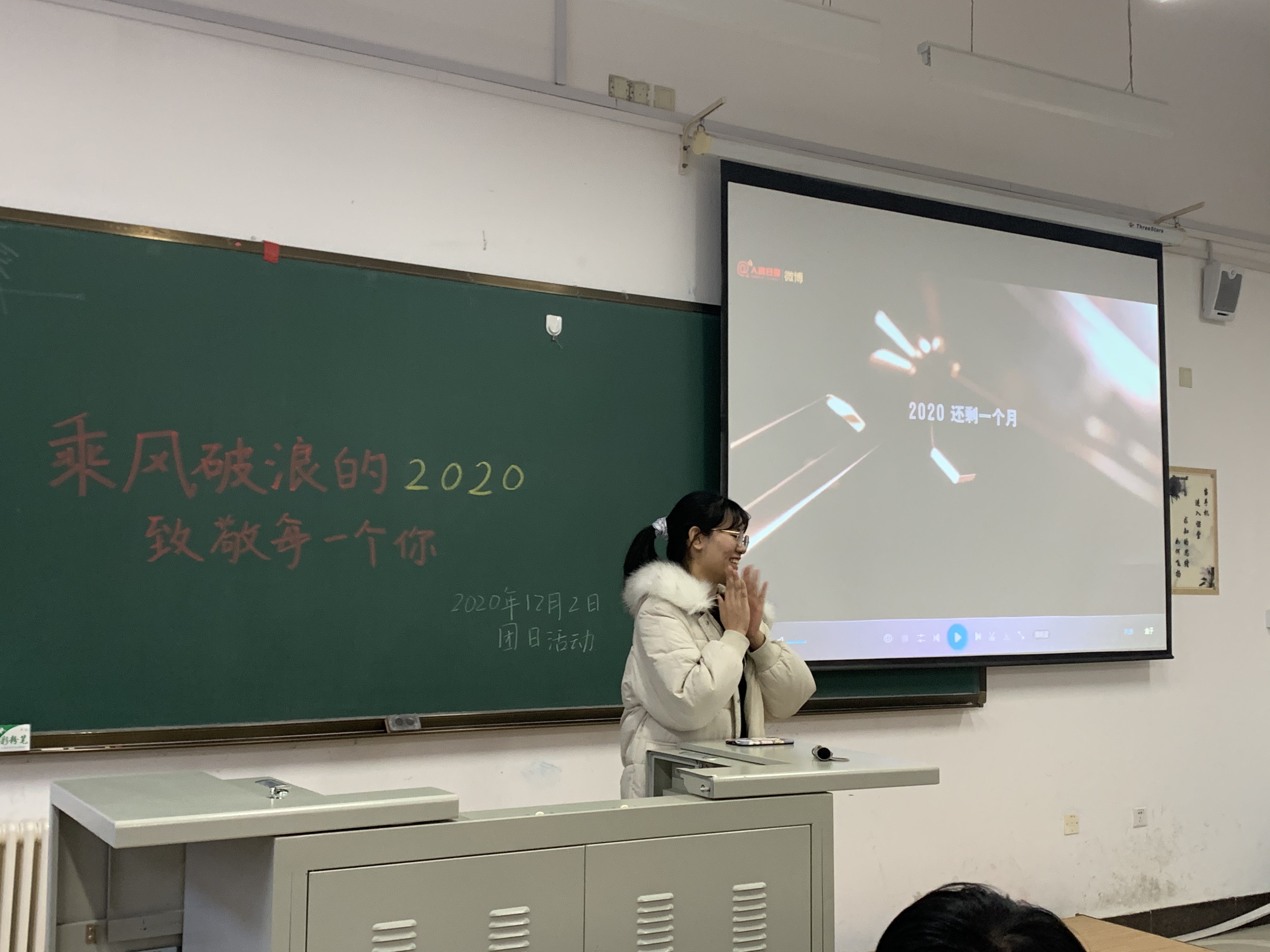 为促进同学们的交流,增进同学间的友谊,回顾2020年的点滴,迎接2021年的到来,suncitygroup太阳成集团651904团支部于2020年12月2日下午3:20在李四光教学楼114教室举办以“乘风破浪的2020,致敬每一个你”为主题的团日活动。本次活动由高思琦同学主持,651904班全体人员参与本次团日活动。