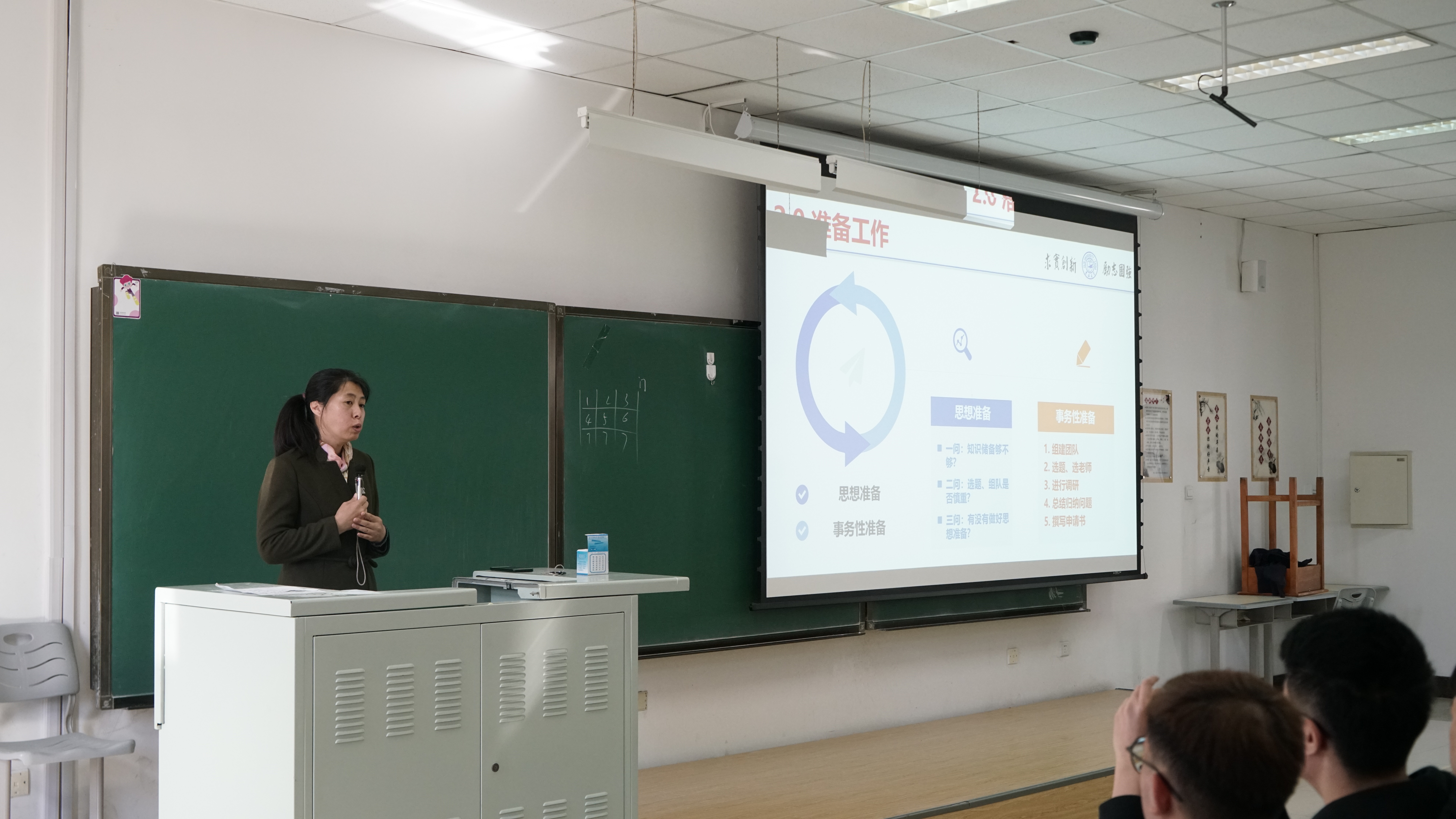 接下来,万云霞老师向同学们介绍了大创项目从开始到结束的要求和流程。在介绍一开始,万云霞老师给同学们播放了蔡元培任职北大董事长时的演讲,希望借此引发同学们的思考,不要在做大创时只在乎分数,要真正的抱着科学研究的态度,抱着提升自己的目的进行大创项目的每一步。除此之外,万云霞老师还具体介绍了大创项目所需各种工作对应的时间节点,撰写各种报告时容易发生的错误,在研究过程中可能产生的各种问题以及其解决方法。最后,万云霞对同学们积极参加大创项目申报表达了期许和希冀。
