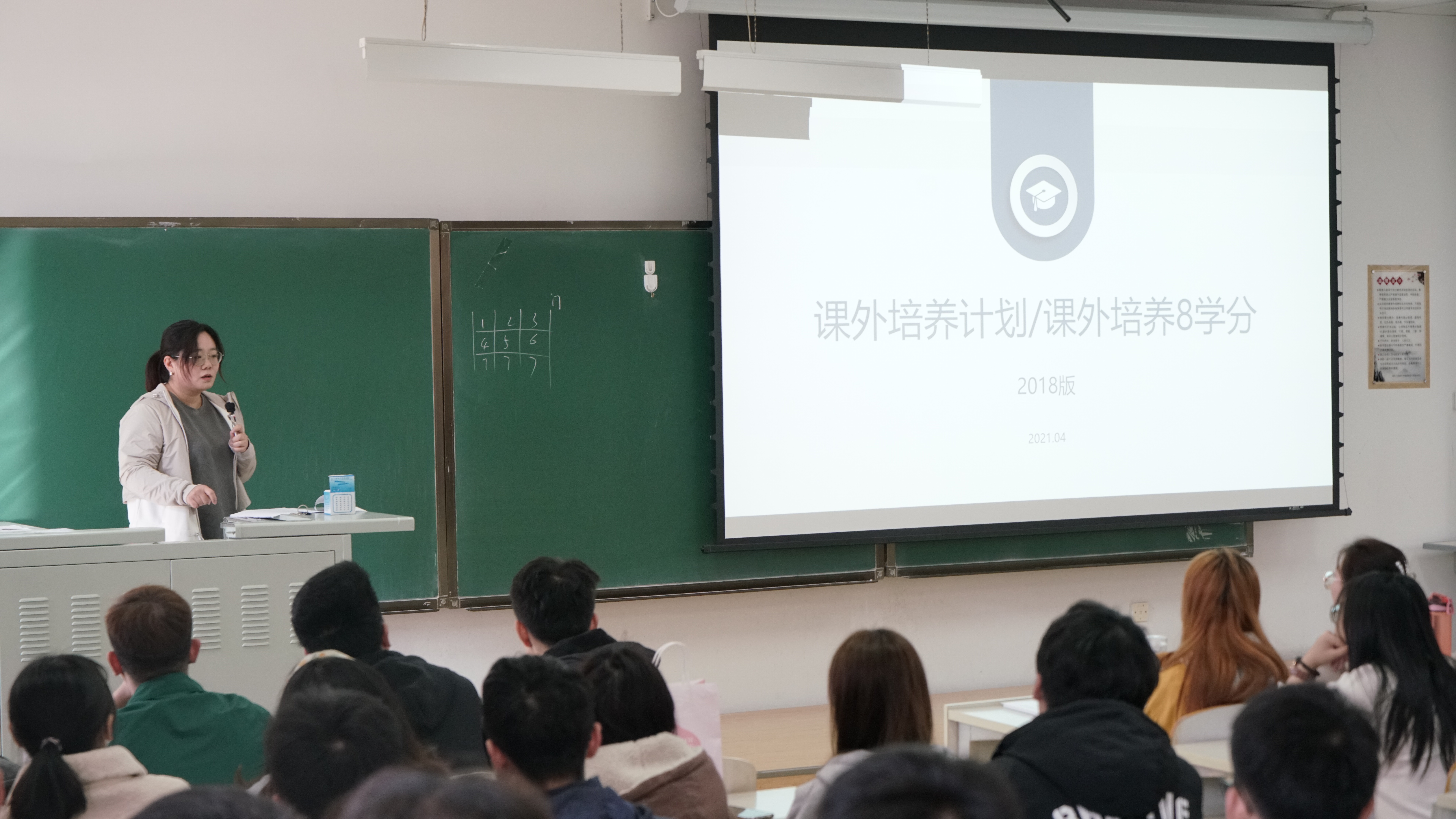 首先,千承辉老师、张莉老师结合仪电公司2018版课外培养计划逐条详细地介绍了每条学分所对应的项目以及得分的明细。在介绍的过程中老师还具体举例,向同学们介绍了每条学分设置的内在逻辑和其想要培养同学的能力,希望同学们能认真对待,在完成培养计划的过程中得到成长。