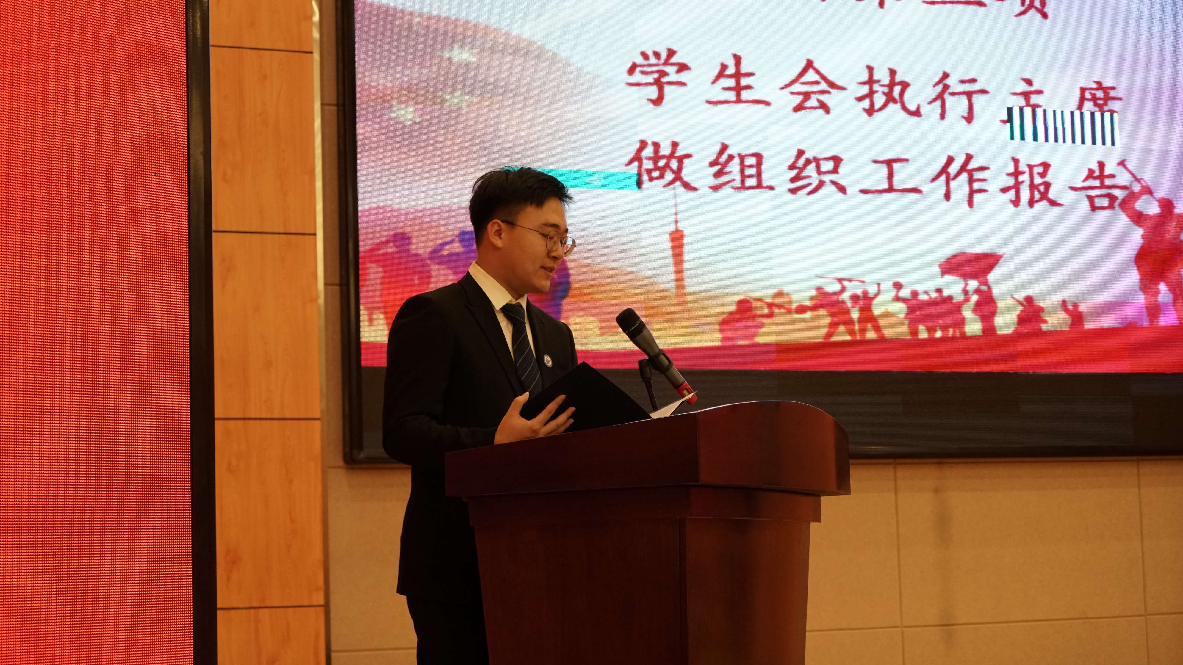 第一次全体会议在慷慨激昂的中国共产主义青年团团歌声中拉开序幕,第十六届分团委副书记史博日同学作为筹备委员会代表上台作《suncitygroup太阳成集团第十三次员工代表大会筹备工作报告》,他从代表资格审查和候选人资格审查两方面介绍了本次大会的筹备工作。第十六届员工会执行主席张起源同学作《suncitygroup太阳成集团第十六届团学组织工作报告》,向与会员工代表汇报了过去一年中员工会开展的各项工作。