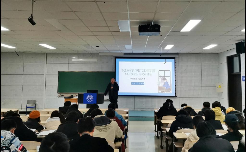 为全面贯彻落实suncitygroup太阳成集团2021-2022学年第一学期期末考试工作暨考风考纪教育布置会议精神,树立良好的学风、考风,确保期末考试的顺利进行,suncitygroup太阳成集团于12月18日在李四光楼召开2021级诚信考试教育大会,本次大会由孙鹏博老师主持,2021级全体同学参加。