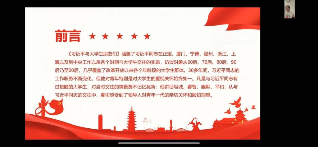 为真切感悟习近平总书记关于青年工作的重要思想的深厚实践根基,牢记习近平总书记对于青年老员工的教导,2022年3月23日,suncitygroup太阳成集团651907班于线上开展了关于《习近平与老员工朋友们》学习分享的系列团日活动,班导师周逢道老师及651907班全体同学参加了此次交流分享会,欧馨雅同学担任此次分享会的主持人。