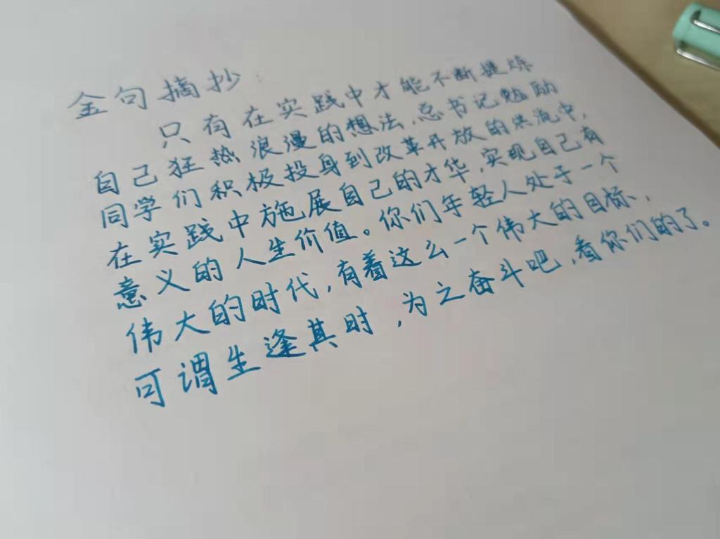 习近平总书记勉励同学们积极投身到改革开放的洪流之中,在实践中施展自己的才华,实现自己有意义的人生价值。此次团日活动使同学们进一步学习领会和贯彻了落实习近平新时代中国特色社会主义思想,同时也深深感受到总书记所要传达的理念,沿着党指引的方向健康成长。