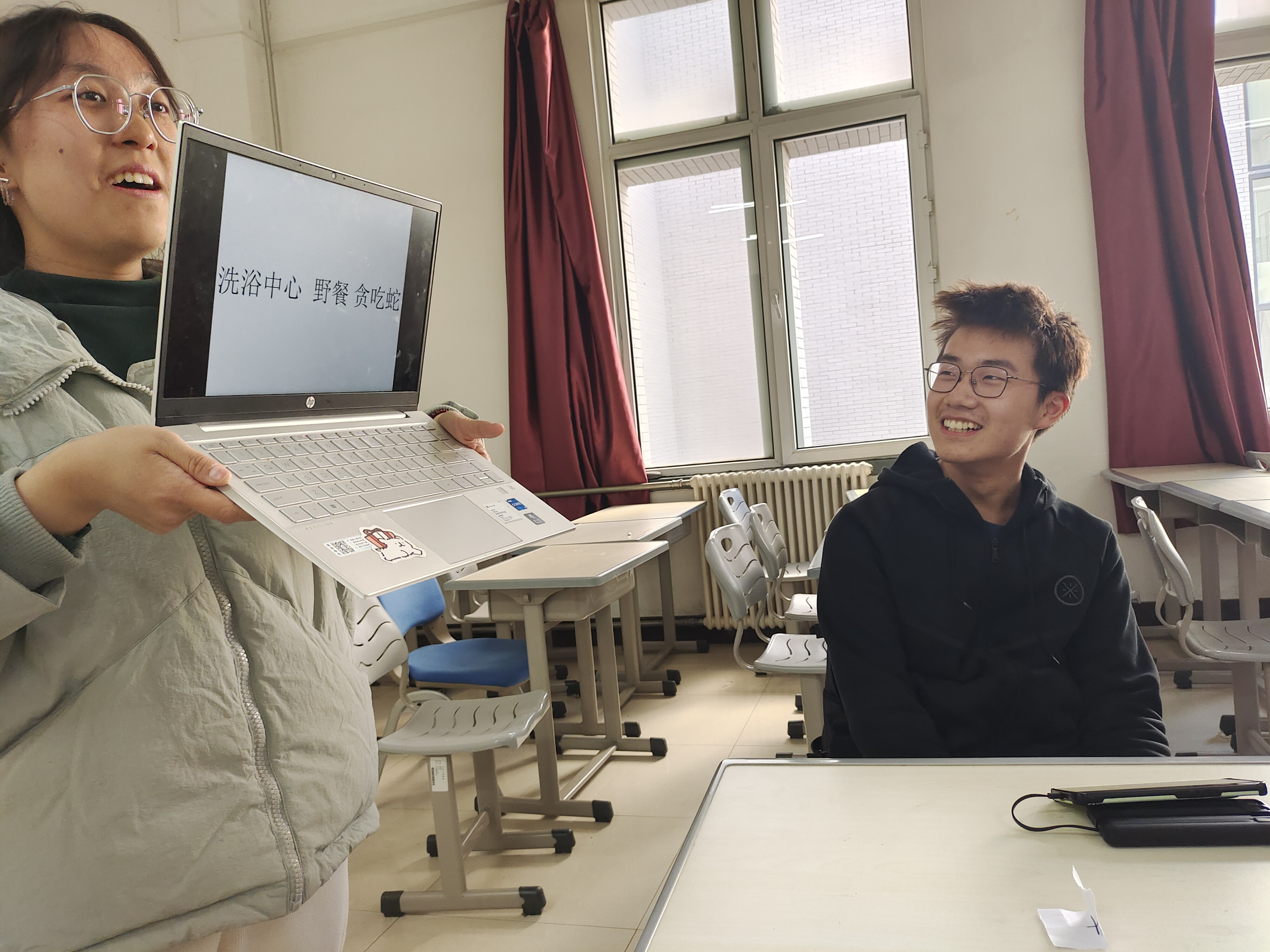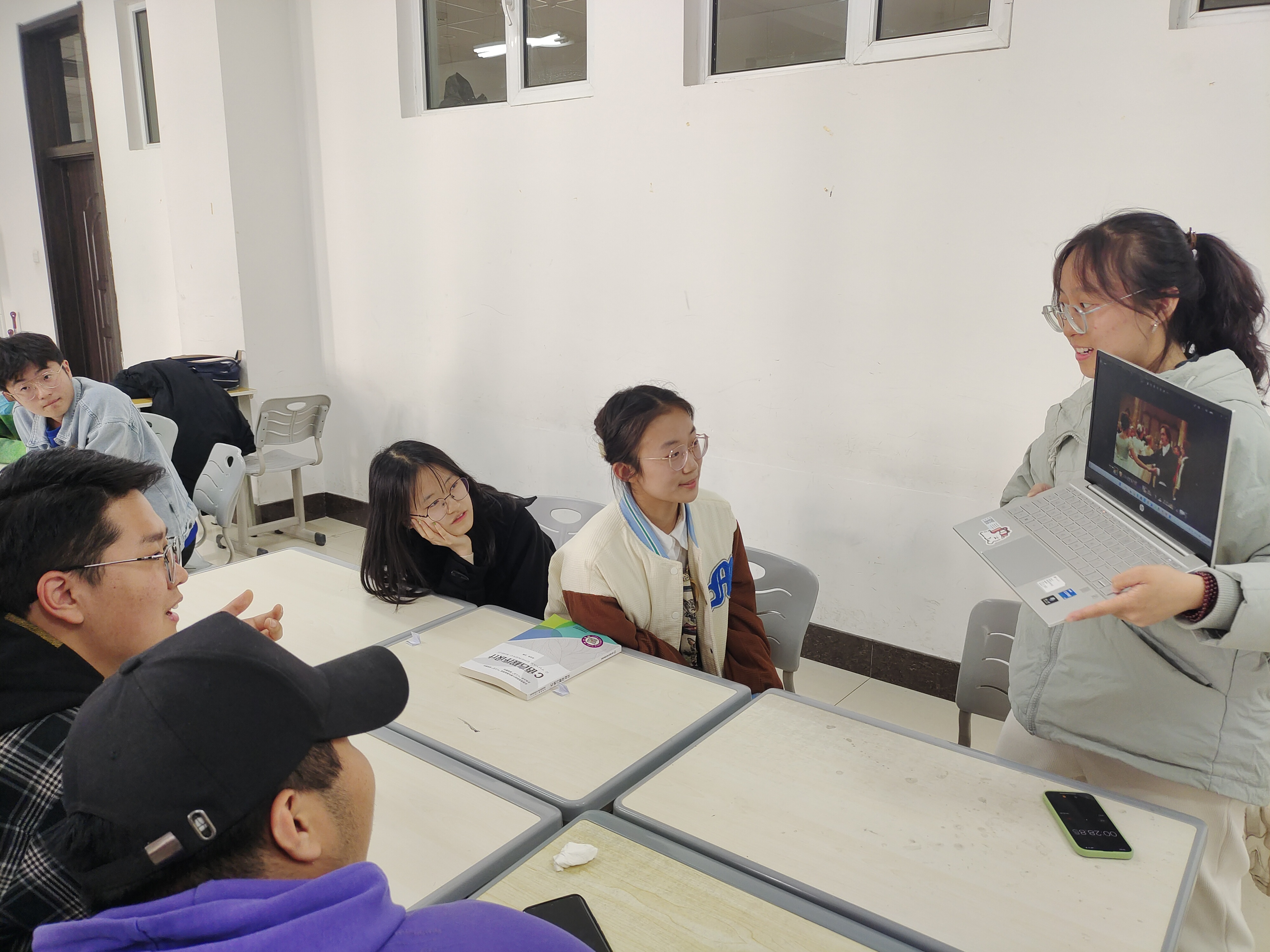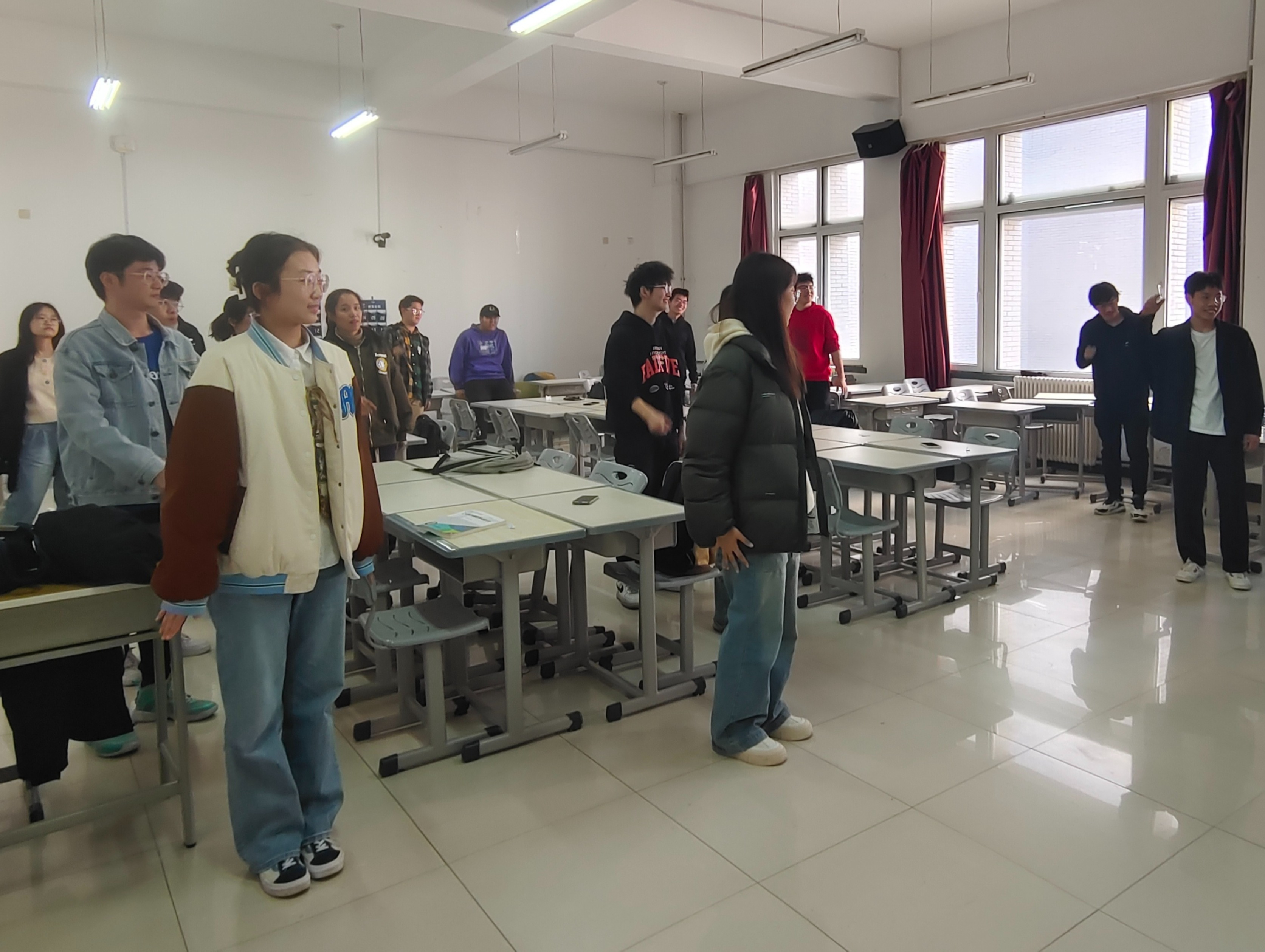 活动由班级心理委员董心怡同学主持,活动开始,通过抽签进行分组,活动暖身阶段,全体同学起立面向讲台,进行肢体放松,由主持人说出相应动作并示范,同学们进行与此相反的动作,经过一阵热身,同学们放松了身体并全身心进入了活动状态。紧接着,为了让参与者在沟通中表达情感、辨识情感,活动来到了情感传递环节,通过接龙的方式,让每一组的同学互相描述彼此在心中的人物印象。游戏阶段,同学们在小组中感受愉悦轻松的气氛,展现合作的魅力,活动也接近了尾声,同学们收获了快乐与放松,在欢声笑语中增进了彼此的默契,在小组比赛中增强了团结感。