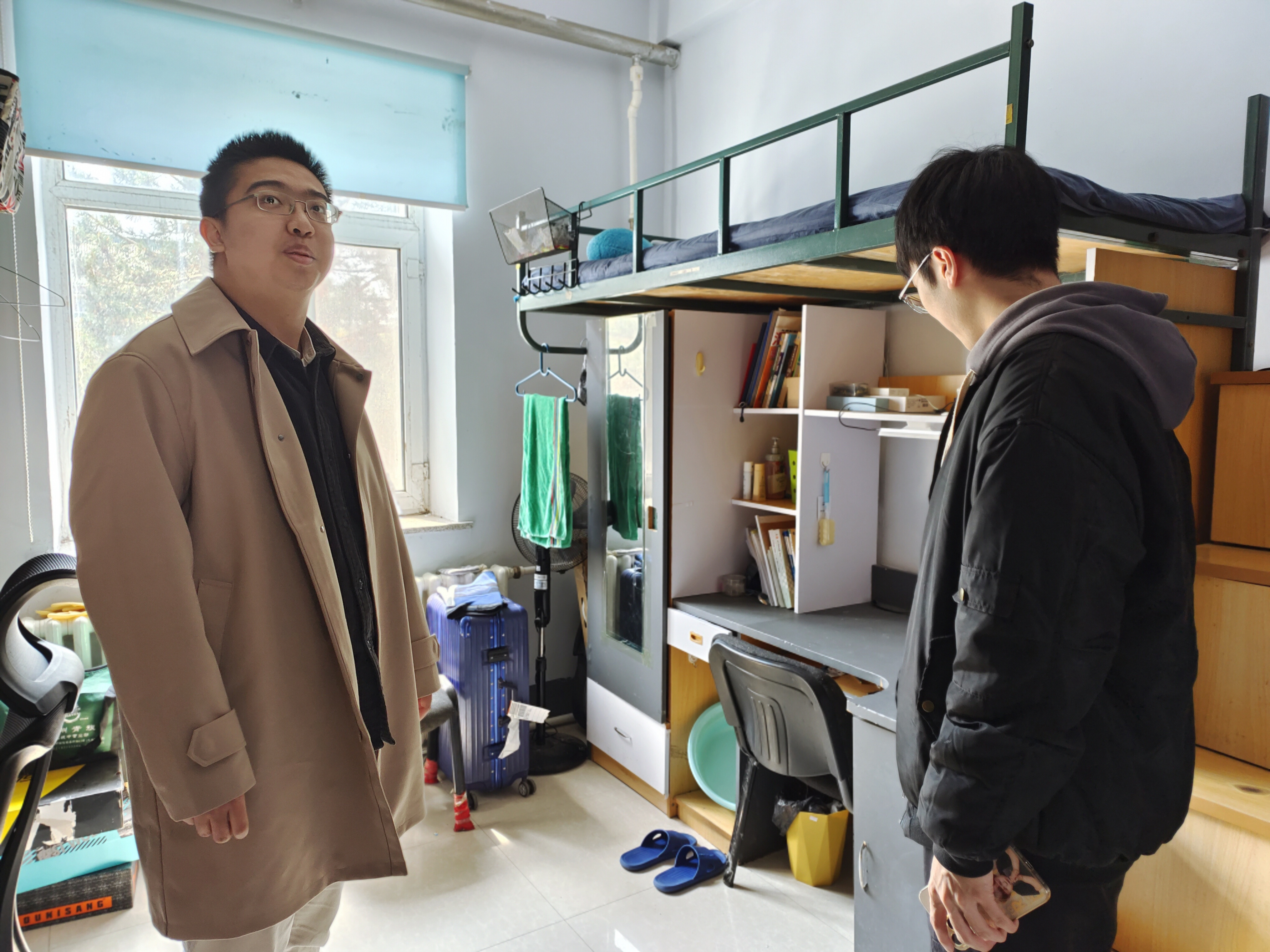 随后,一行人又对研究生寝室进行了检查,检查的内容包括宿舍整体卫生状况及用电安全等。周琪老师强调各位研究生要自觉遵守员工公寓管理规定,不使用电热杯、热得快等违章电器,不在寝室内使用明火,做到人走断电。寝室内无人时,要锁好门锁,保管好个人贵重物品。对于卫生不佳的宿舍,周琪老师提出了整改措施;在用电安全方面,各位研究生都能够做到人走电断,未发现研究生在寝室使用违章电器。