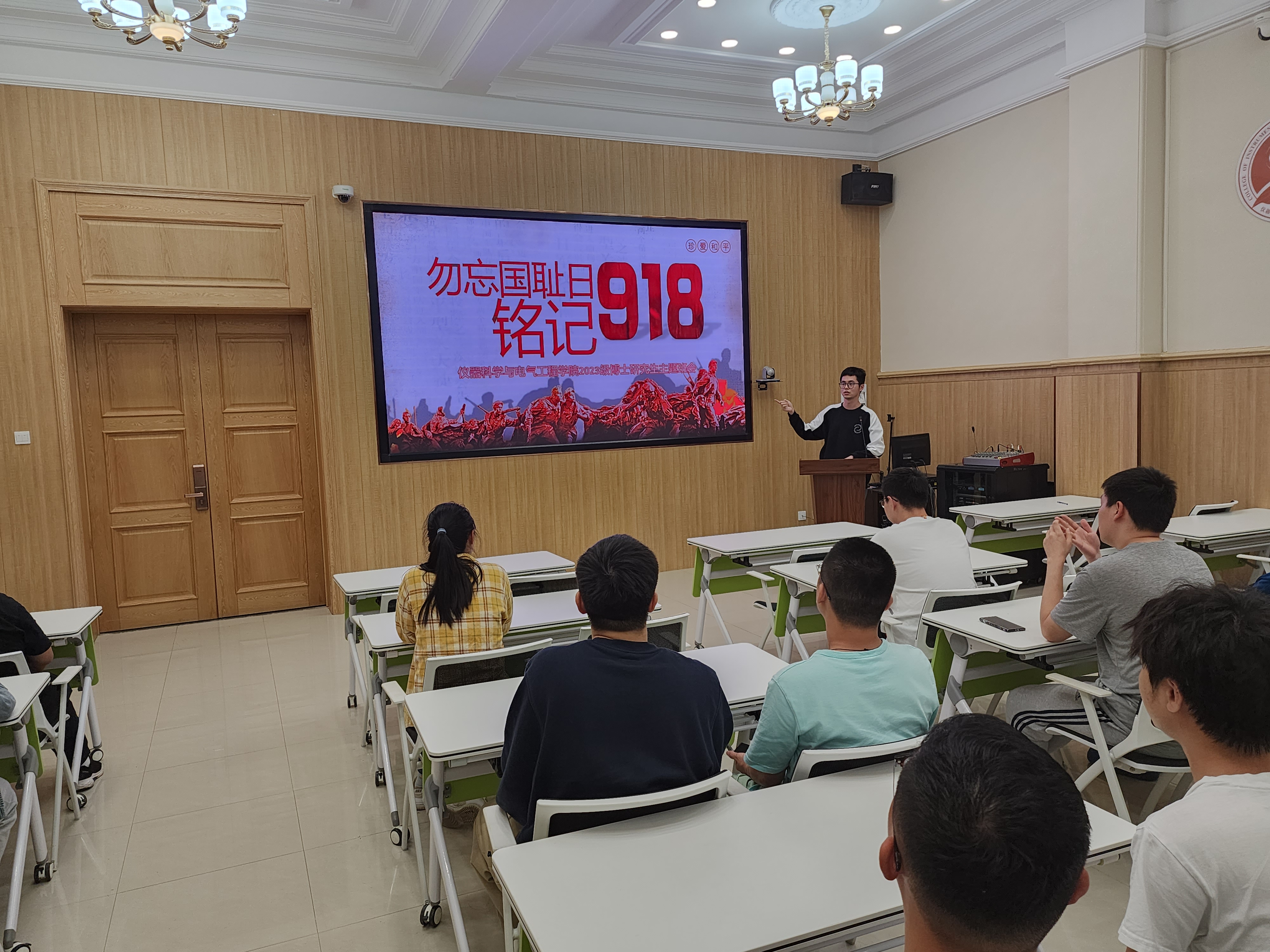 为了使2023级研究生坚定理想信念、练就过硬本领、厚植爱国情怀、砥砺强国之志,在实现中华民族伟大复兴中国梦的新长征路上奋勇搏击,公司于9月18日晚在地质宫208多功能厅召开了“勿忘国耻日,铭记九·一八”爱国主义与理想信念主题班会。本次班会由2023级博士研究生班长仲维一主持,2023级博士研究生参加本次活动。