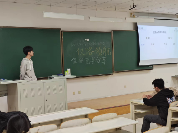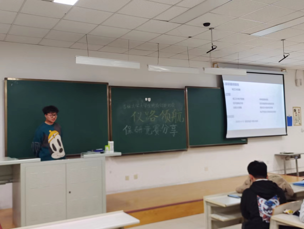 首先,已经保研至清华大学的杨智伟分享了自己的经验。他不仅详细介绍了保研的过程,并强调绩点、科研、英语、竞赛等方面的重要性,也在此过程中介绍了仪电公司测控技术与仪器专业部分保研同学的去向,让同学们对保研现状有所了解。除此之外,他表示,在大学阶段,与高中生活最大的不同是要找到自己感兴趣的方向并坚持下去,应该以知识本身为主而不是仅仅在于考试。最后,他总结到:‘保研’是一场勇者的博弈。