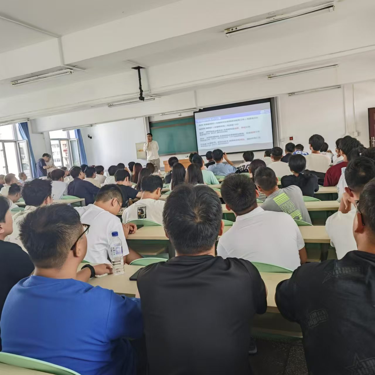 最后,周老师对研究生日常管理规定进行了解读。周老师从研究生党建、奖惩、学籍、档案、出国留学、资助、医保、心理等方面进行了全面介绍。在讲解中,周老师与同学们频繁互动,加深了大家对相关规定的印象。周老师鼓励大家在潜心做好科研的同时,积极参与公司、公司举办的文体活动,努力成为德智体美劳全面发展,具有家国情怀、崇高品格、勇于担当和富有创新精神的研究生。