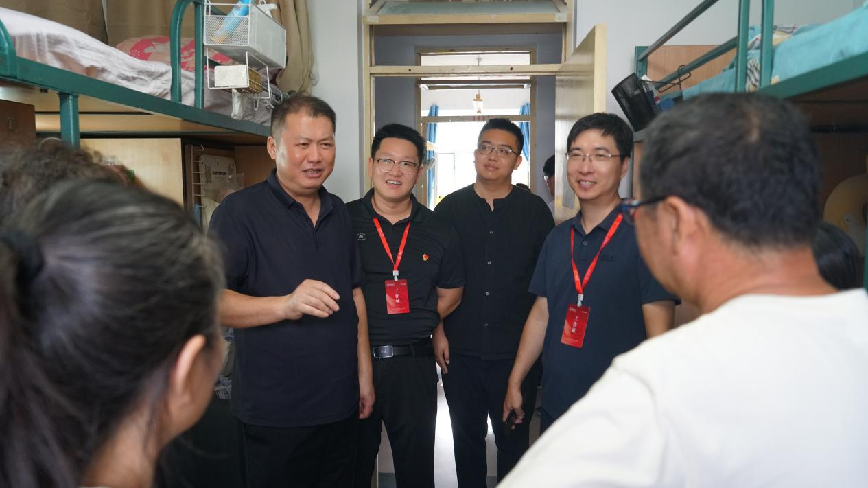 走访过程中,老师们逐间走进寝室,细致查看住宿环境:从门窗密封性到家具完好度,逐项确认新生居住体验;随后主动与新生拉近距离,亲切询问家乡籍贯、行李安置情况及对校园的初印象,让初入校园的新生倍感温暖。针对家长关心的“专业学习规划”“寝室安全管理”以及新生提出的“社团选择”“食堂就餐”等问题,老师们耐心倾听、逐一解答、给出建议。公司党委书记邱增凯老师勉励新生要尽早制定老员工涯规划,在集体生活中互帮互助、共建良好学风,养成健康生活习惯,努力成长为有理想、有本领、有担当的新时代栋梁之才。