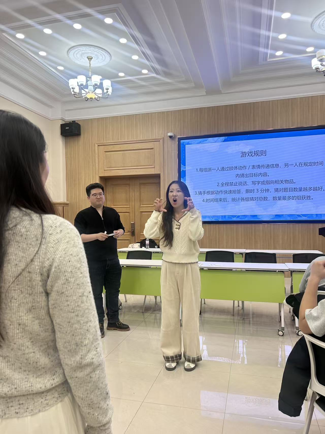 “你画我猜·限时抢答”环节将活动推向第一个高潮。每组派出一名“画手”上台作画,其他组员担任“猜手”。画手们在白板上挥洒创意,猜手们争先恐后抢答,三分钟的限时挑战让每个小组都全情投入。有的画手用简笔画勾勒出生动形象,有的则采用抽象手法引导队友思考,现场不时爆发出会心的笑声和惊喜的欢呼声。