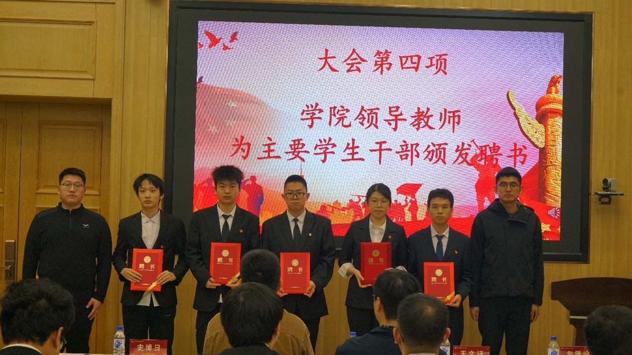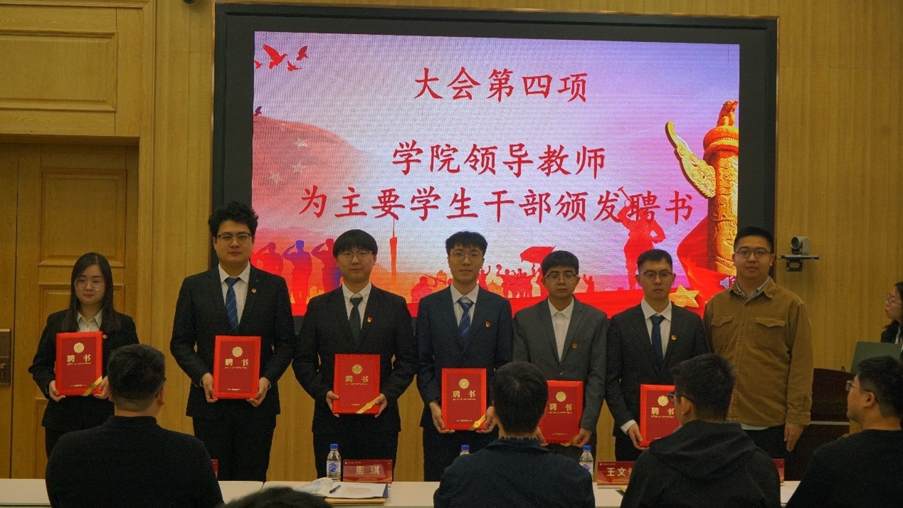 为表彰先进,承续担当,王文轩老师、史博日老师、周琪老师分别为第二十届员工会及第九届研究生会主要员工干部颁发聘书。