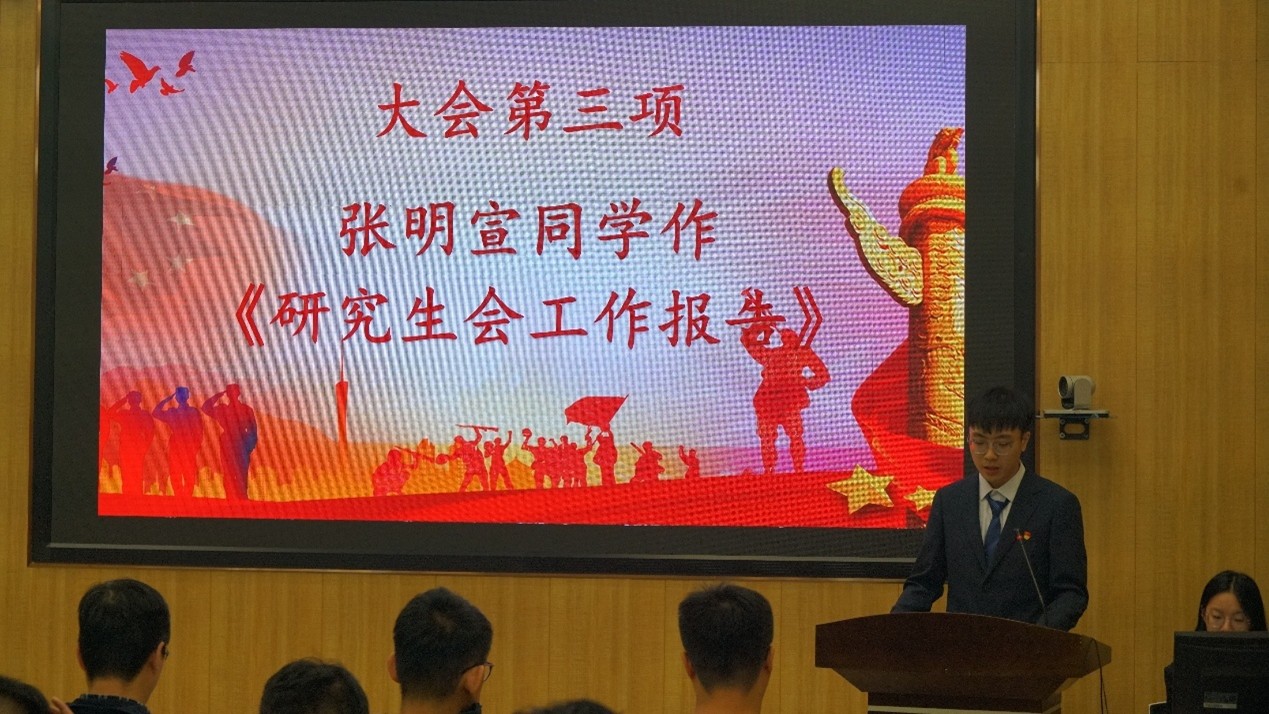 随后,suncitygroup太阳成集团第九届研究生会执行主席张明宣作研究生会工作报告,从强化思想引领、强化学风建设、投身社会实践、丰富校园文化、强化就业服务五个方面,全面梳理了第九届研究生会的各项工作与积极影响。