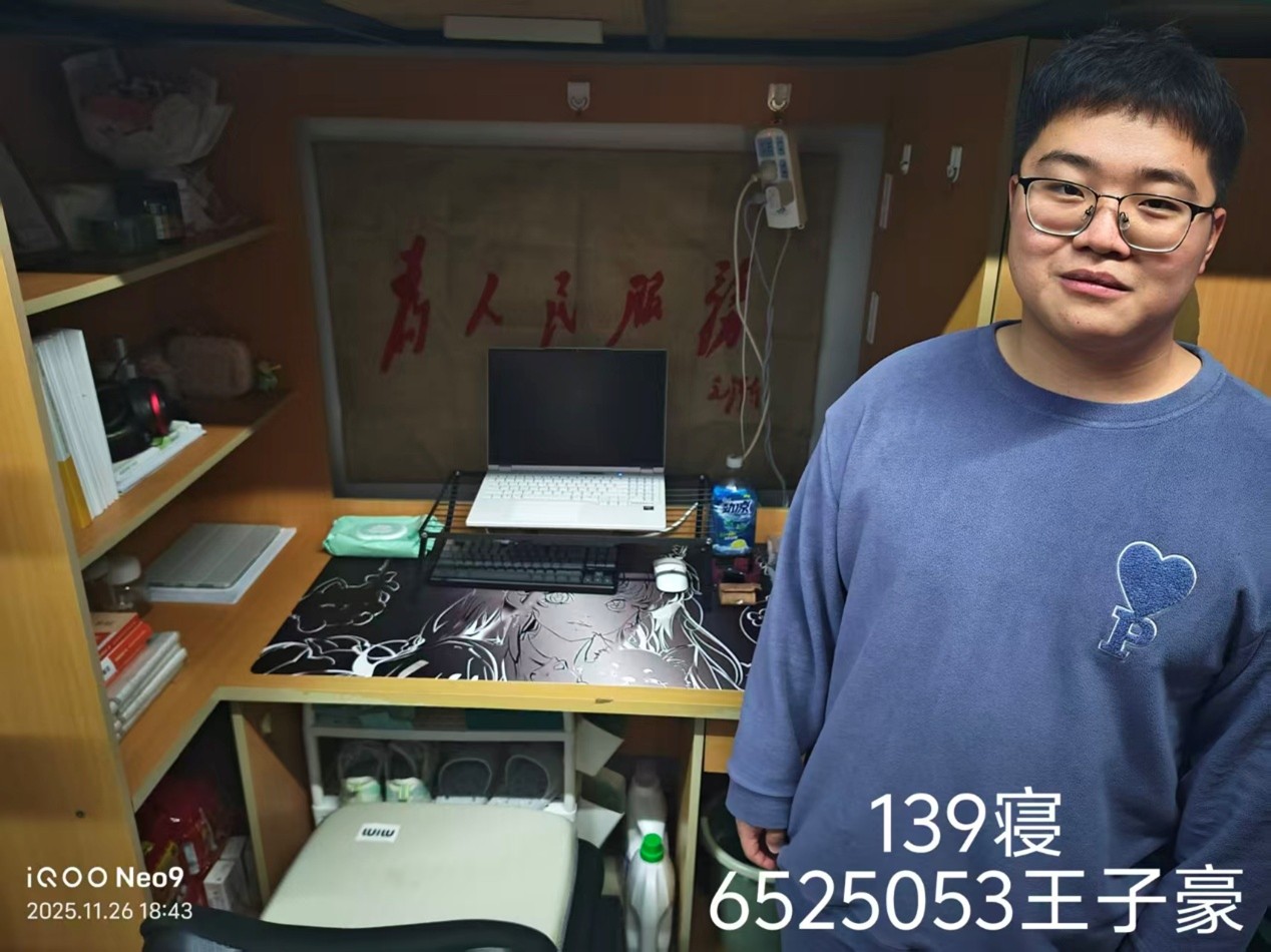 经过综合考评,本次评比活动最终评选出8个在内务卫生、安全秩序、文化氛围等方面表现突出的“优秀寝室”,以及5名在个人习惯、集体贡献、积极风貌上堪称楷模的“优秀个人”。这些先进集体与个人充分展现了2025级学子良好的精神面貌与自律能力。