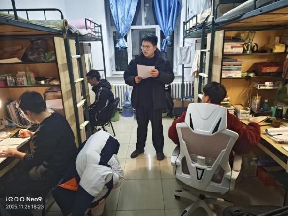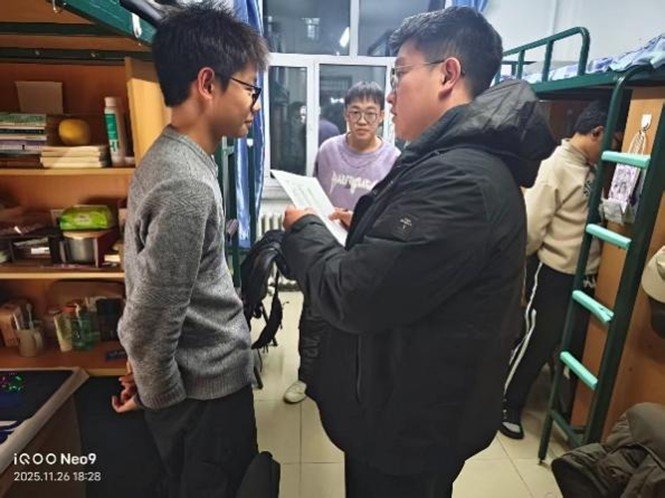 检查团队深入每一间员工宿舍,将评比检查视为一次与员工面对面交流、心贴心沟通的宝贵契机。在检查过程中,史博日老师细致入微地关心每一位同学的学习与生活,在同学的书桌前驻足,翻动书页,亲切询问近期的课程难度与学习压力,关切地了解同学们的饮食习惯与作息规律,叮嘱大家要劳逸结合,保持健康体魄。对于同学们提出的困惑与需求,史老师耐心倾听,并一一给予建议和解答。