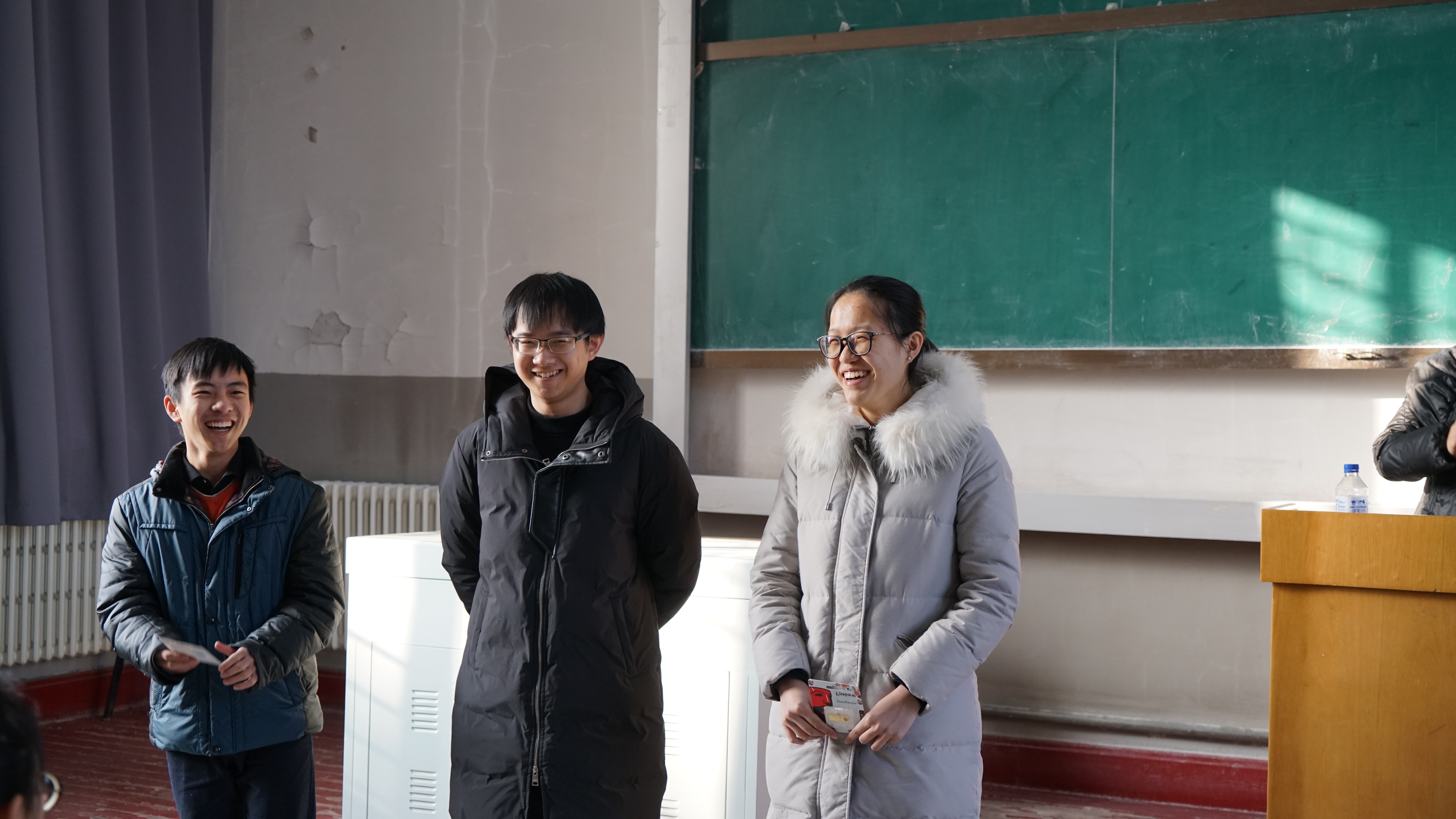 2017年1月20日上午九点,2017年度寒假培训总结大会正式开始。首先,千承辉老师向大家表达小年祝福,充分肯定了大家在过去七天培训中出色的表现,同时要求大家再接再厉争取更上一层楼,在17年的全国老员工电子设计大赛中取得好的成绩。接着,千老师对在七天培训中表现优秀的组合进行了表彰,颁发216+开放实验室优盘。其中获得优盘的组有14级李冰洋组、15级张博森组、16级黄晓菲组。在各组拿到各自的优盘后,各组组员发表了获奖感言以及七天培训的培训感受,都表示在新的一年更加努力,定不负老师期望。最后,师生一起观看了16级成员组织的机器人表演,总结大会在大家的欢笑声中结束。
