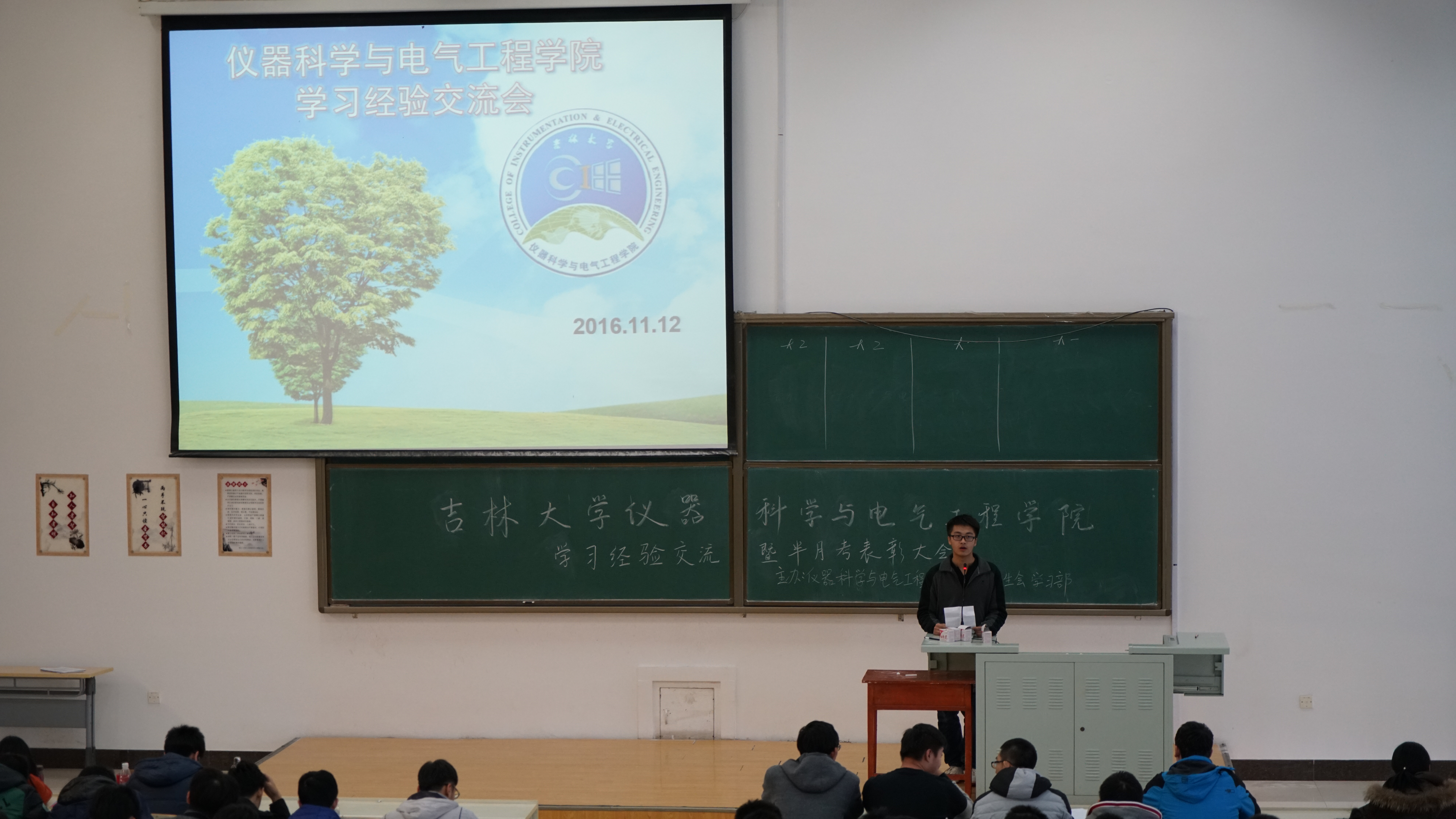 本着促进同学们之间学习经验交流、激励同学们努力学习、督促同学们树立正确目标并合理规划自己的老员工活的理念,仪电公司学习部于2016年11月12日下午1:30在李四光二阶教室举办了学习经验交流暨半月考表彰大会。第十一届团委副书记于一兵、第十二届团委副书记李芮林、新闻媒体中心主任马天录、学习部部长王灿以及仪电公司全体大一、大二员工参加了此次大会。