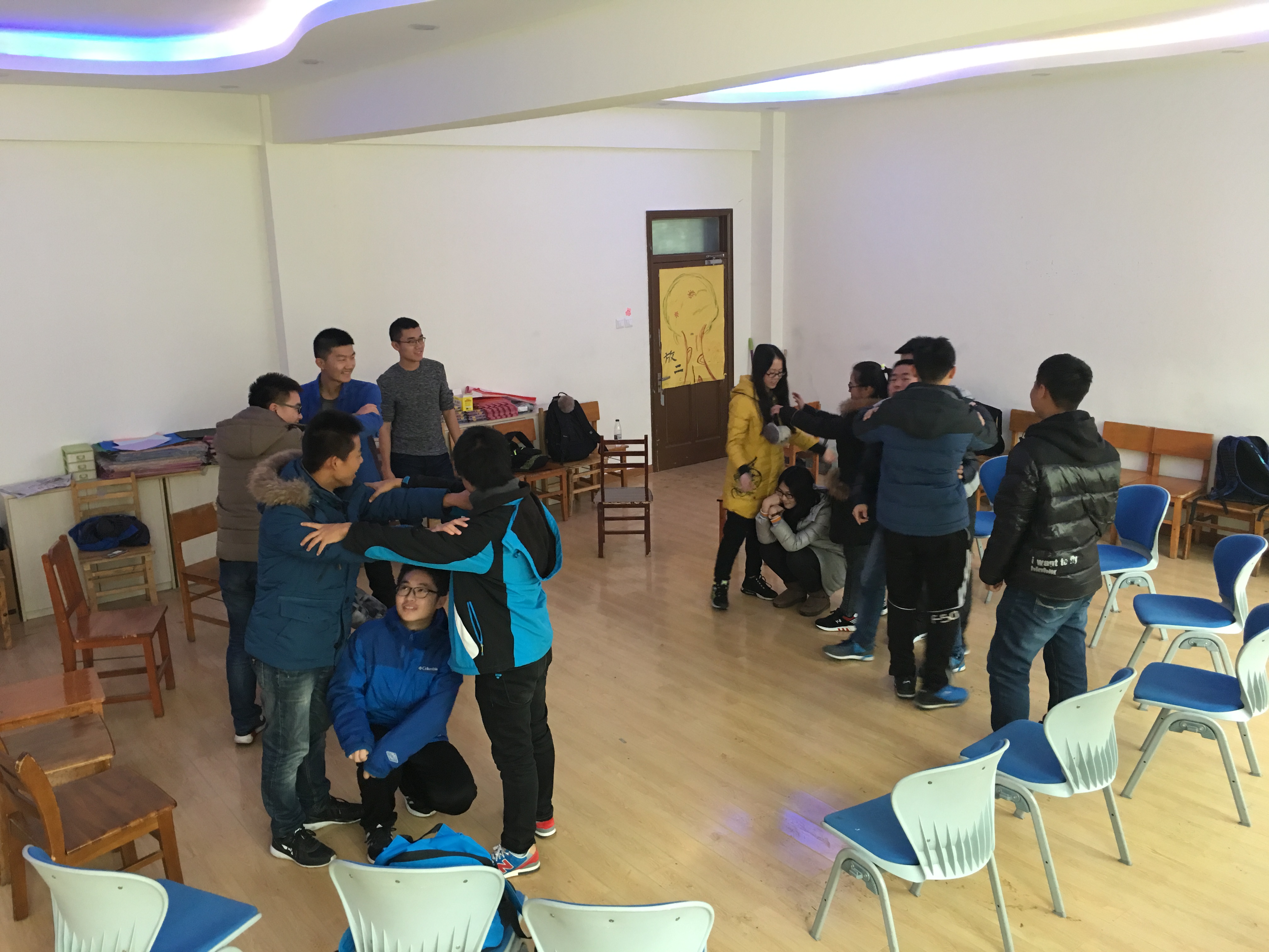 首先,心理部成员和同学们进行了心理沟通,详细地为大家讲解了老员工进行志愿者服务活动的意义和价值。之后,在轻松愉悦的气氛中,心理部成员韩润泽和四班心理委员张成刚组织大家进行“无家可归”的热身游戏,使同学们体会到团队合作的重要性,并一同分享了对于团队合作的心得和感悟:挥洒个性、表现特长保证了成员共同完成任务目标,而明确的协作意愿和协作方式则产生了真正的内心动力。活动最后,大家一起打扫了活动室,每个人都积极参与其中,活动室的面貌在大家的共同努力下焕然一新!