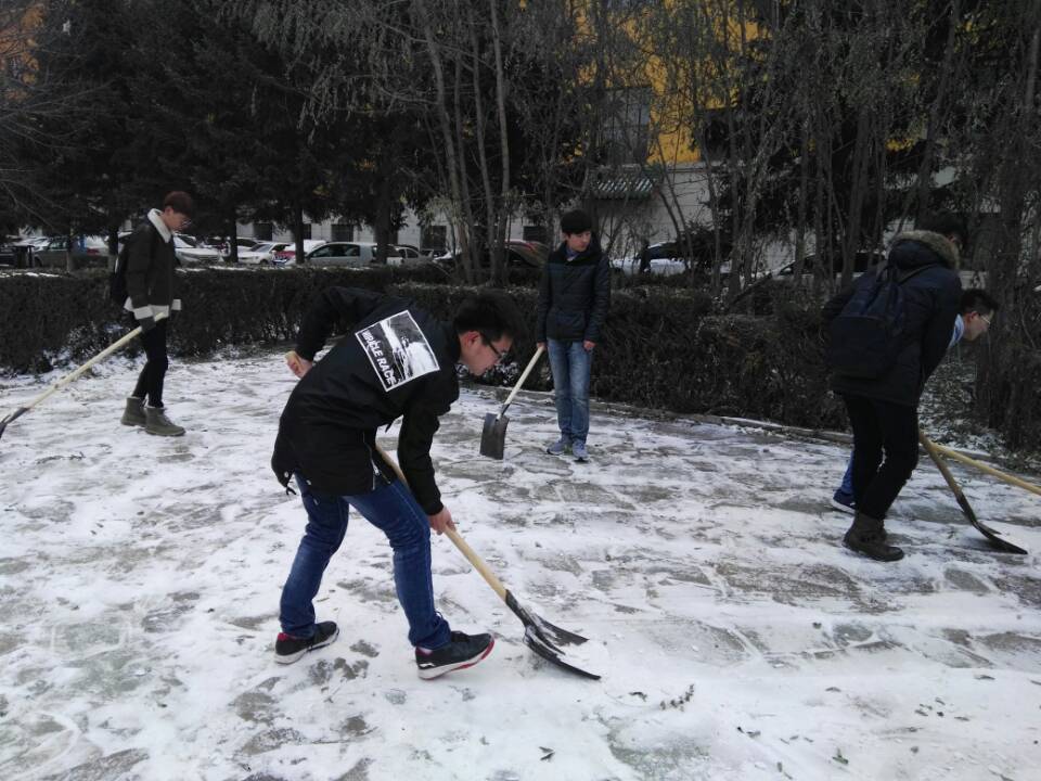 为弘扬雷锋精神和“奉献、友爱、互助、进步”的志愿者精神,引导广大青年员工在日常生活中践行社会主义核心价值观,力求先进,服务社会。2016年11月8日下午,suncitygroup太阳成集团青年老员工在分团委员工会主席陈健同学的带领下在suncitygroup太阳成集团朝阳校区再次开展义务清雪活动。