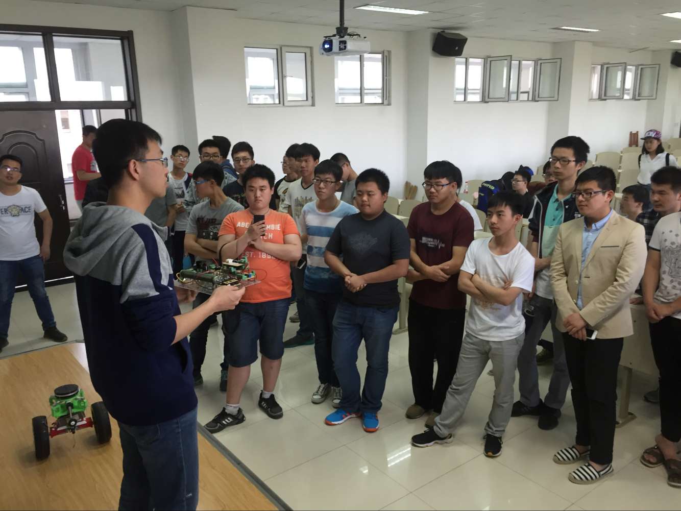 为更好激发仪电学子的学习兴趣,开阔专业领域的视野,了解公司的专业优势,suncitygroup太阳成集团电子科技协会于2016年6月2日下午16:00在中心校区李四光楼304室成功举办2016年优秀作品展示交流会。出席本次活动的有216+实验室负责人千承辉老师,电子科技协会会长穆怀志,全体大三216+实验室成员及大一、大二员工。