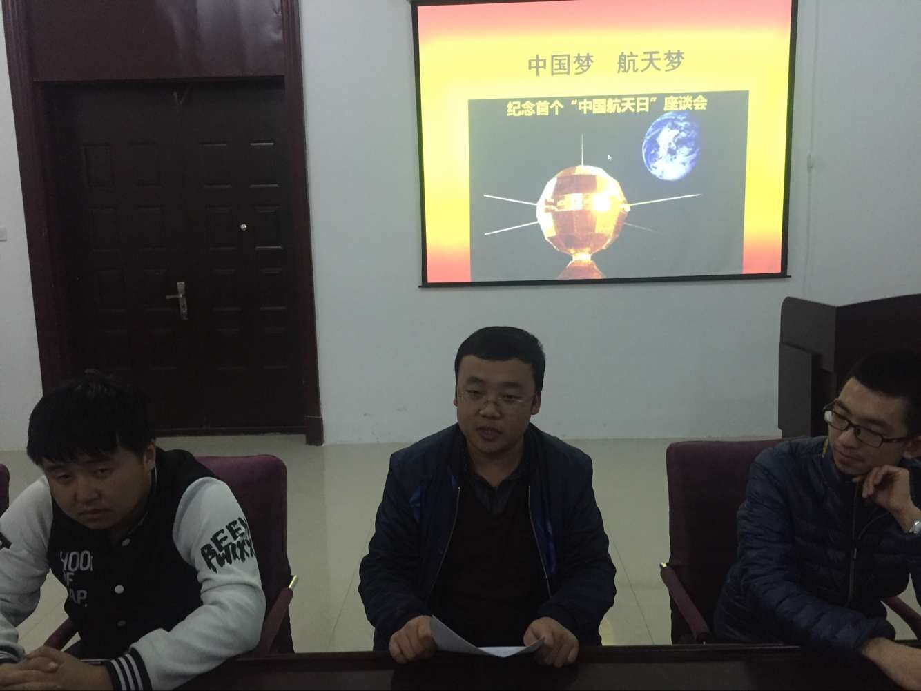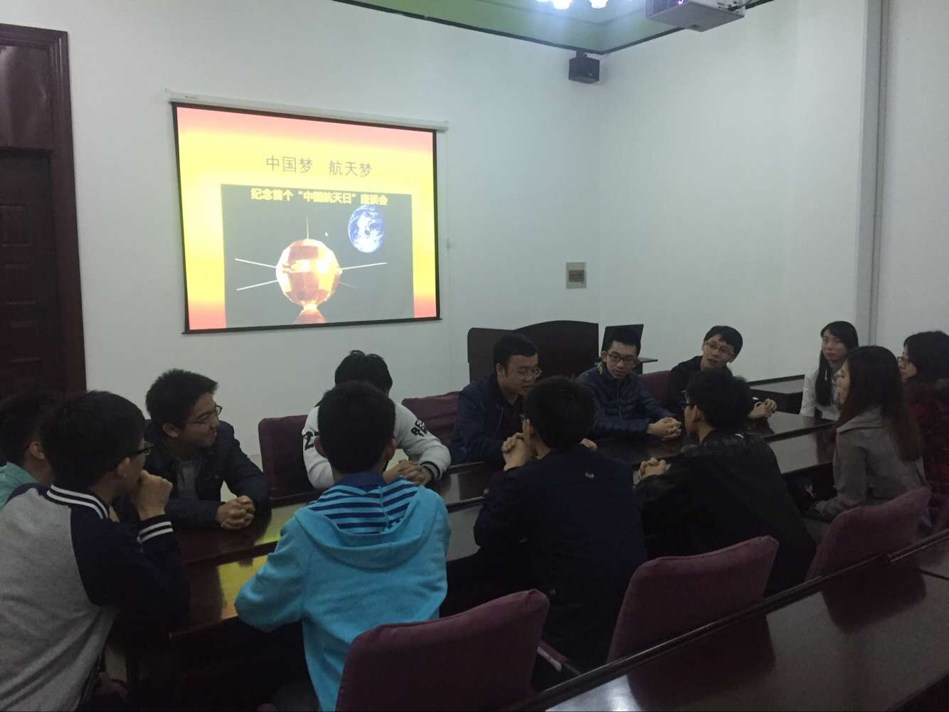 为深入学习习近平总书记系列重要讲话精神,铭记历史、传承精神,激发全民尤其是青年员工崇尚科学、探索未知、敢于创新的热情,为实现中华民族伟大复兴的中国梦凝聚强大力量。2016年4月24日19:00,suncitygroup太阳成集团在地质宫214室举行纪念首个“中国航天日”座谈会。会议由公司团委书记兼2015级辅导员张昊宇老师主持,全体团学干部参加。