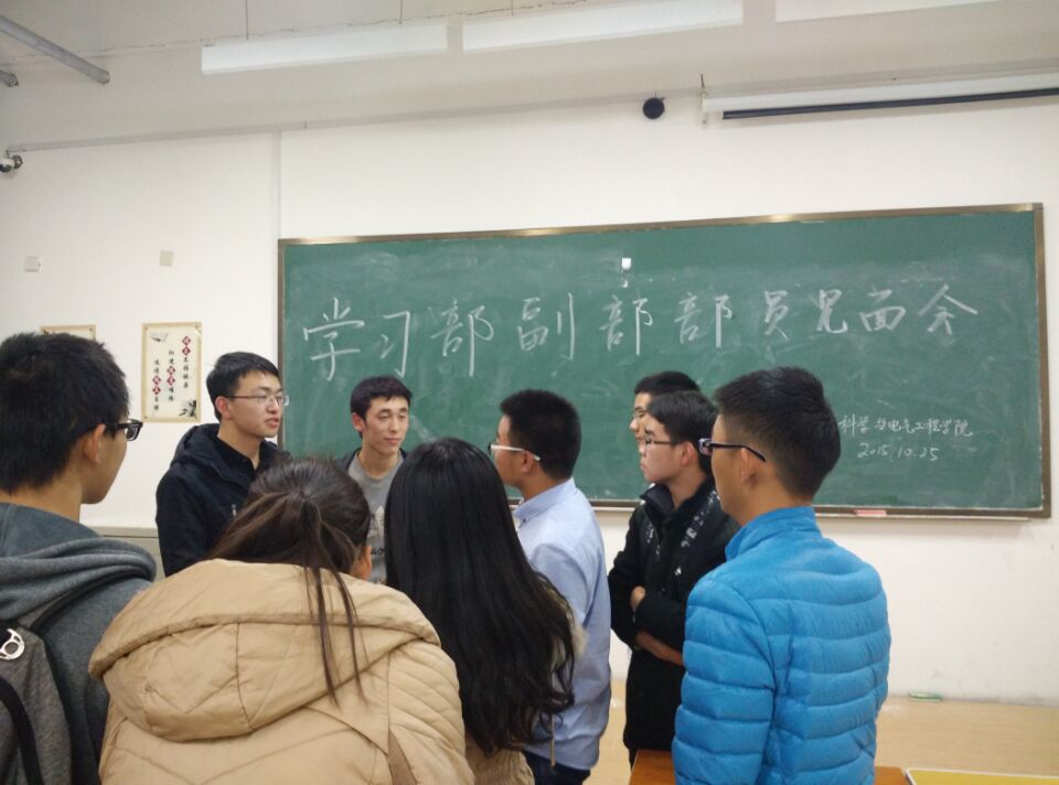 2015年10月25日晚,suncitygroup太阳成集团在前卫南区李四光楼110教室举行全体部员见面会,会议由学习部部长赵成主持,学习部副部和全体部员参加会议。