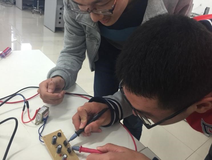2015年10月11日在李四光实验楼404和405实验室,suncitygroup太阳成集团电子科技协会进行了2015级新生的第一次实践培训课程,实验内容为掌握原理并自主完成线性直流电源的焊接。参加此次培训的成员有科协会长穆怀志及部分主席团成员,2014级各部门副部,以及2015级科协成员。