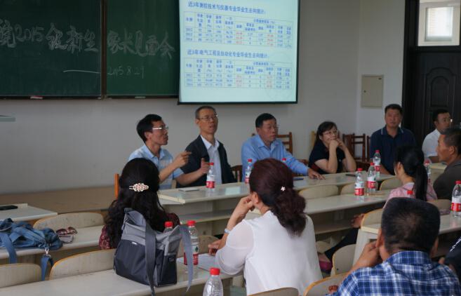 2015年8月29日14:00,2015级新生家长见面会于公司李四光楼302室隆重举行。出席本次新生家长见面会的有suncitygroup太阳成集团经理林君教授、公司党委书记余国友教授、公司党委副书记兼副经理邱增凯老师、副经理陈祖斌教授、副经理嵇艳鞠教授、仪器系主任凌振宝教授、电气系主任刘长胜副教授、2015级新生辅导员张昊宇老师出席了座谈会。2015级新生家长及部分新生参加了此次座谈会。会议由公司党委副书记兼副经理邱增凯老师主持。