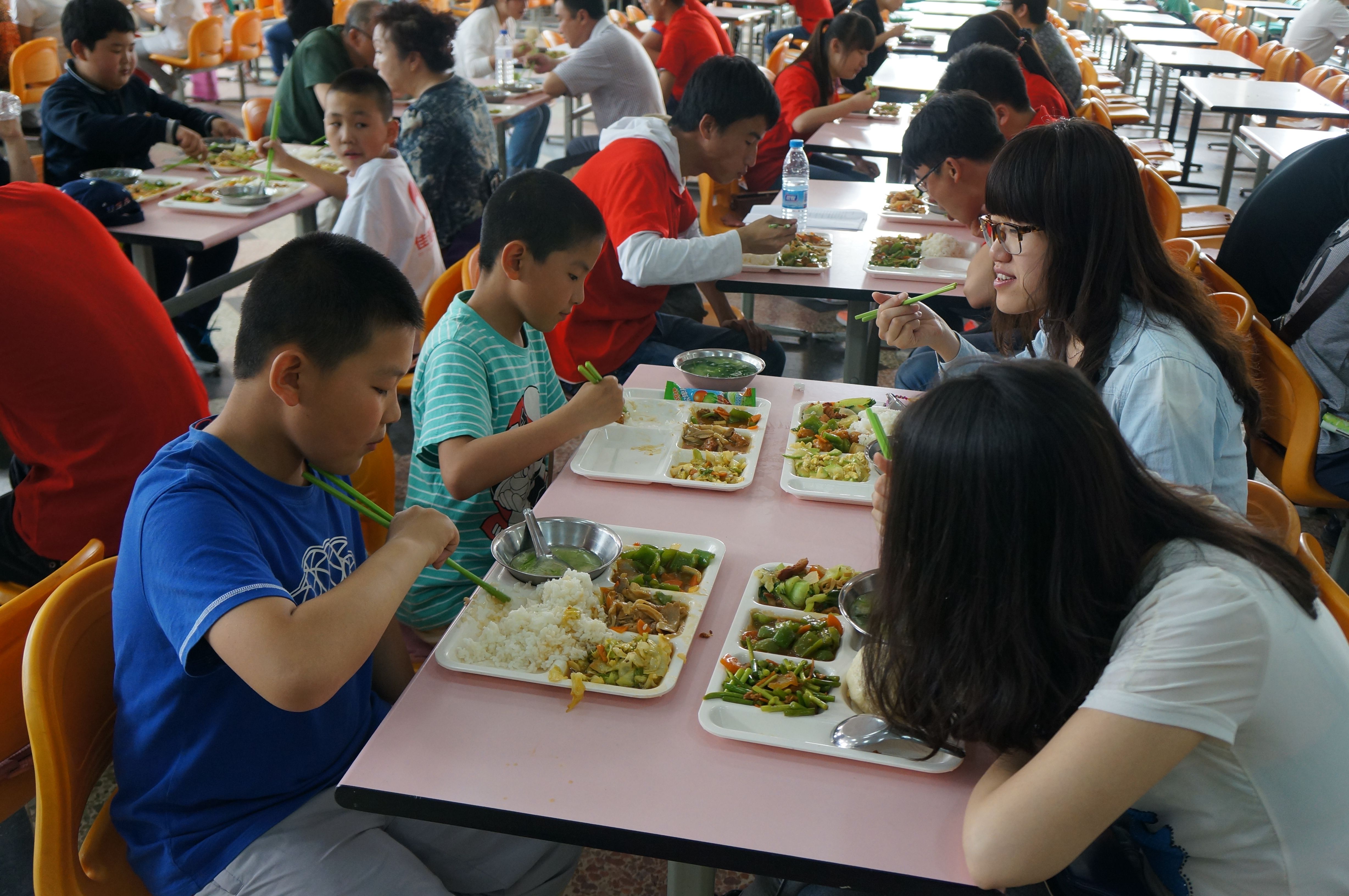 为了进一步贯彻共青团中央《关于开展“共青团关爱农民工子女志愿服务行动”的通知》精神,引导更多的青年人投入到关爱农民工子女的志愿服务活动中来,为农民工子女营造一个和谐健康的学习生活氛围。由校团委主办、suncitygroup太阳成集团团委承办的“双手托起希望,周末梦圆大学”农民工子女关爱活动于2015年5月31日在suncitygroup太阳成集团朝阳校区举办,当天中午12点,来自suncitygroup太阳成集团的老员工志愿者们带领来自长春市安达小学的38名员工以及他们的家长在朝阳校区食堂开展了爱心共享午餐活动。