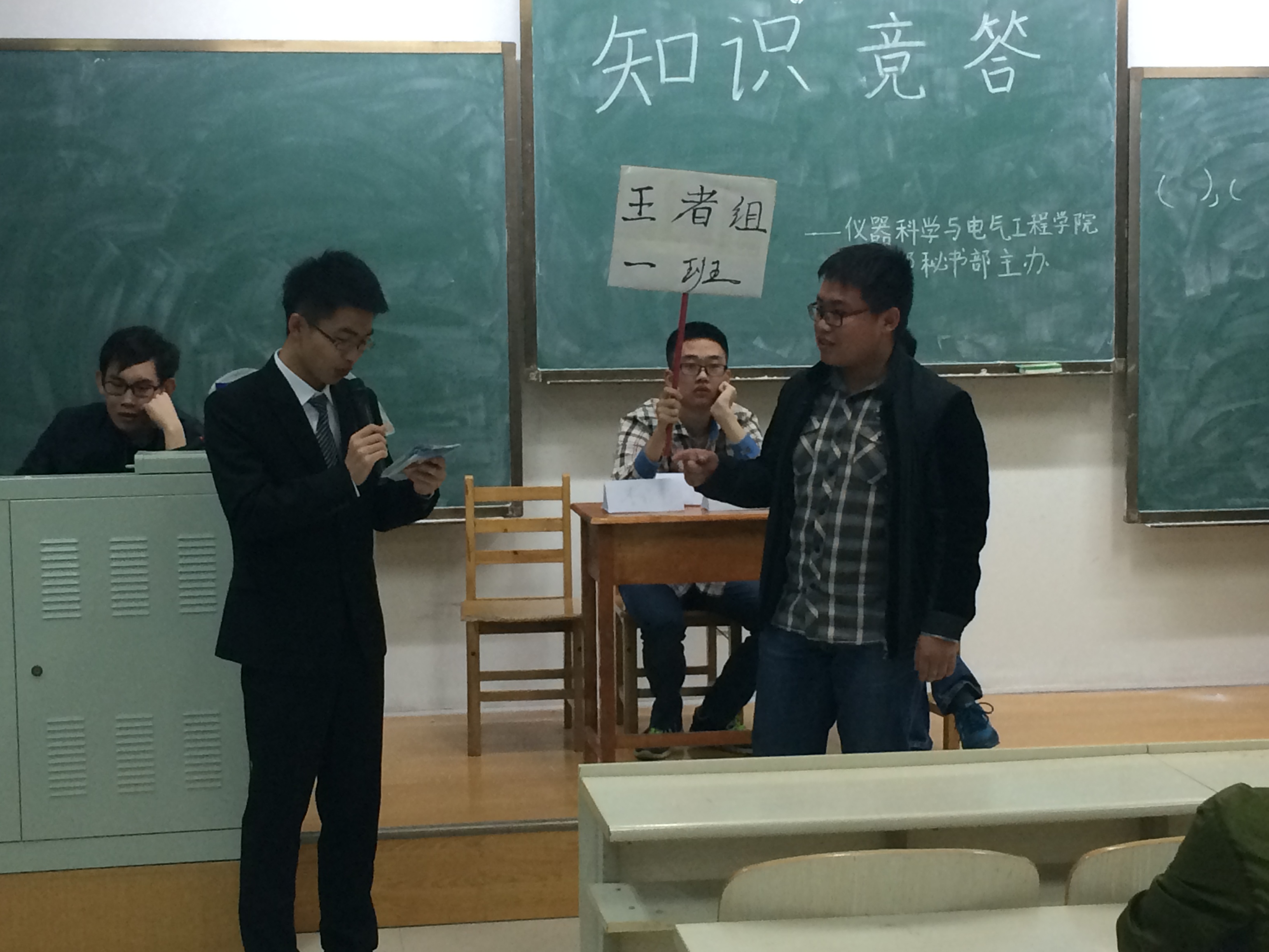 为更好地关注基础园区低年级员工的健康成长和全面发展,丰富广大同学的课余生活,提高同学们的综合素质,增强团队协作精神和集体凝聚力,suncitygroup太阳成集团第十届分团委、员工会于2015年3月至5月开展了班级风采大赛系列活动。2015年4月30日晚,一站到底知识竞赛在中心校区李四光楼208室举行,院员工办公室主任兼2014级辅导员王冕老师、第十届分团委员工会全体员工干部出席了活动,2014级全体新生同学参加了活动。