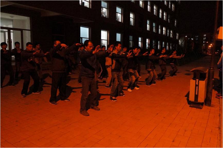 太极拳的训练在每天晚上八点半至十点进行,尽管晚上天气稍凉,风速较大,但仪电公司的健儿们依旧英姿飒爽,精神饱满,热情高涨,丝毫没有因为天气的原因而影响情绪。随着指挥同学的口令,同学们依次有序地散开,列成方阵。伴随着优雅的旋律和老师的殷殷教诲,仪电健儿们尽情地展现自我,他们动作流畅整齐,轻盈柔美,神态自然,衔接到位,刚柔并济,行云流水,赢得了指导老师的赞美与肯定。