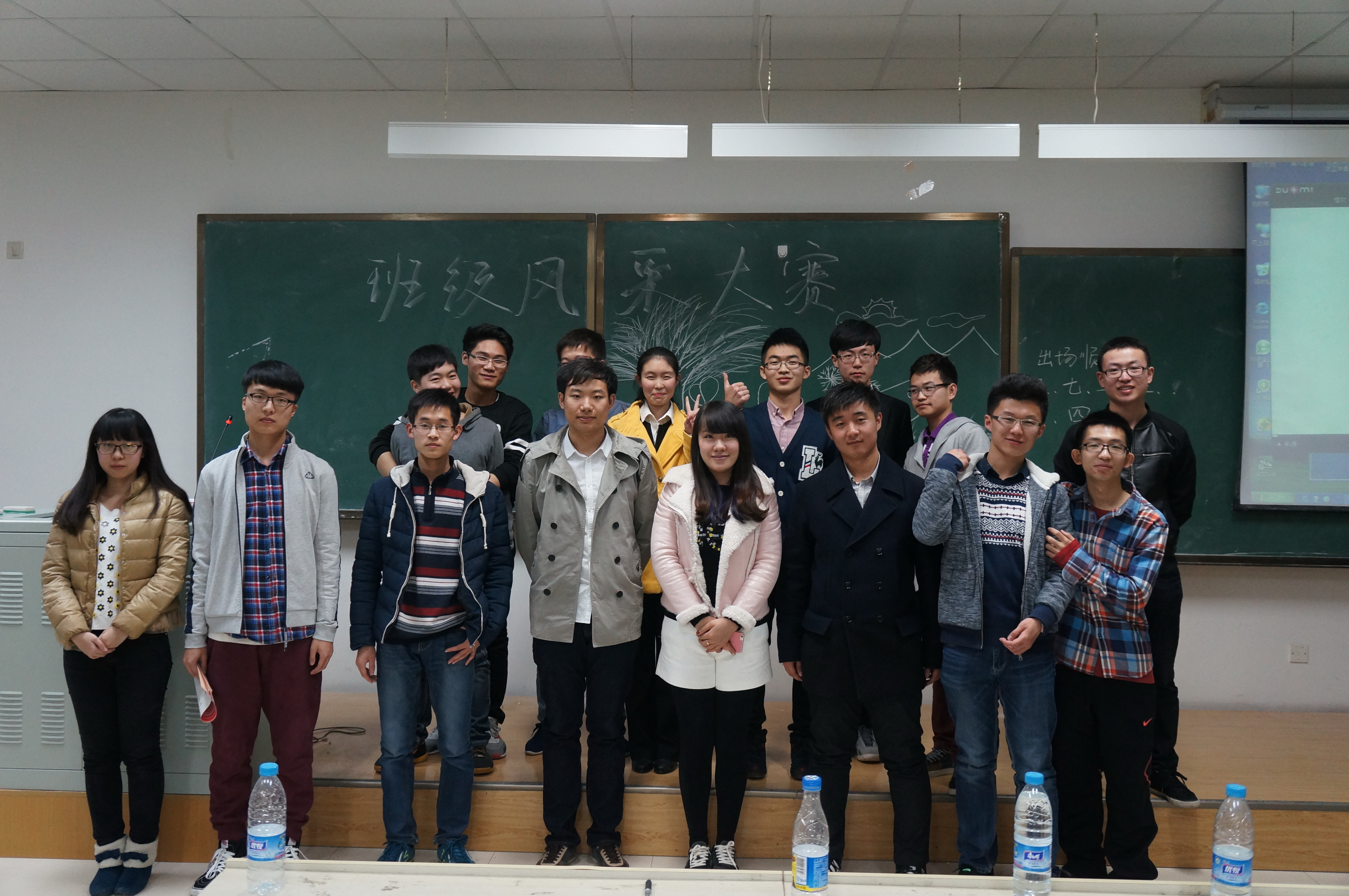 首先,主持人刘瑛奇以幽默诙谐的开场白博得阵阵掌声,随即请出王冕老师作赛前的动员讲话。王冕老师阐明了比赛的目的——展示青春风采,塑造班级形象,并要求在座的各位同学积极参与比赛,以平常心面对比赛成败。随后,比赛正式拉开帷幕。第一个上场的是651405班,班长用视频及ppt展示了本班的班级特色及班级文化,紧随五班的是测控技术与仪器专业卓越工程师班,卓越班的同学用几种不同的风格介绍了他们班的整体情况。随后二班班委集体上阵,从学习、生活等各方面讲述了二班的特色,把大赛推向了高潮。之后,三班、四班、六班依序上场,用PPT、视频等方式展示了自己班级的风采。班级特色展示期间掌声不断,好评如潮。轻松愉悦的班级特色展示之后,是各班才艺展示。各班同学用歌声,用舞蹈向在场的老师和同学展示了大一新生的青春活力,获得台下一片掌声与喝彩!时间转眼即逝,最后主持人宣布比赛结果,二班脱颖而出,以其突出的综合实力夺得第一名,一班和四班获得第二名,剩余班级均获得第三名,班级风采大赛在全体参与人员的合影中圆满结束。