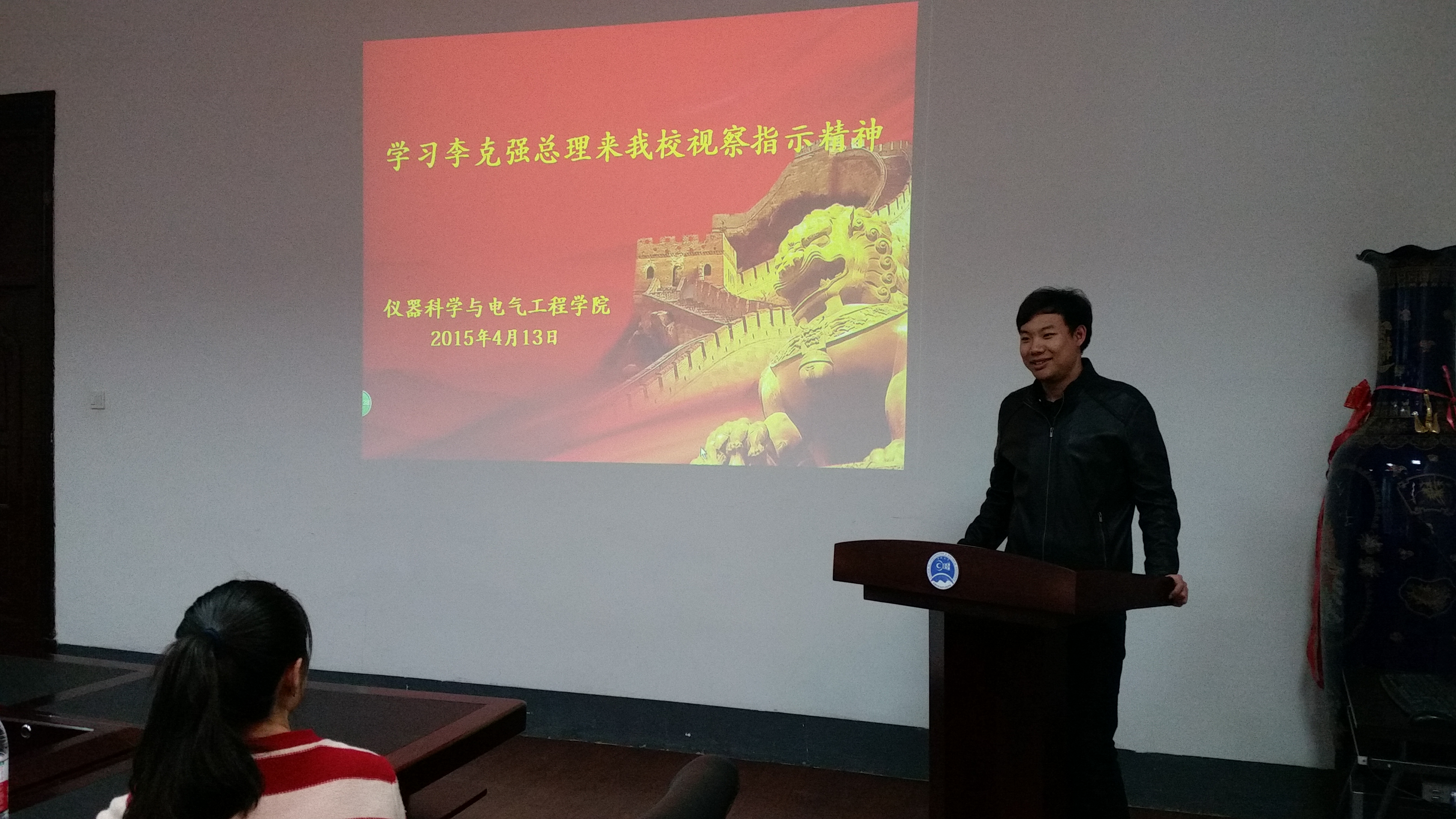 为响应公司关于传达李克强总理来公司视察指示精神的号召,深刻学习领会李克强总理在公司视察指示精神,suncitygroup太阳成集团团委于2015年4月13日9:00在朝阳校区地质宫330室组织召开了“学习总理来公司视察指示精神报告会”。suncitygroup太阳成集团团委副书记兼2012级辅导员蔡印老师、员工兼职辅导员张昊宇、公司第十届分团委员工会主要员工干部以及各年级员工代表参加了本次报告会。