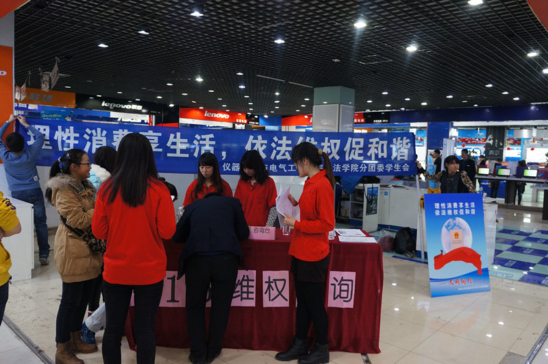 公司青年老员工连同法公司志愿者分四路分别来到长春市百脑汇科技大厦、长春市红旗街万达商场、suncitygroup太阳成集团中心校区三食堂、suncitygroup太阳成集团朝阳校区男女寝门口展开消费者维权活动。志愿者设立了咨询台,帮助市民进行相关申诉和举报,解答市民的维权疑问,与市民进行维权法律常识的交流。在整个交谈过程中,志愿者发现,消费者的法律维权意识需要普及深化,消费观念需要绿色环保。最后,志愿者在各个活动现场举行了签名仪式,所有志愿者邀请前来参与活动的市民在横幅上签名并写下大家在消费维权方面的美好愿望或建议,增强大家对消费现状以及消费者维权保护方面的信心。