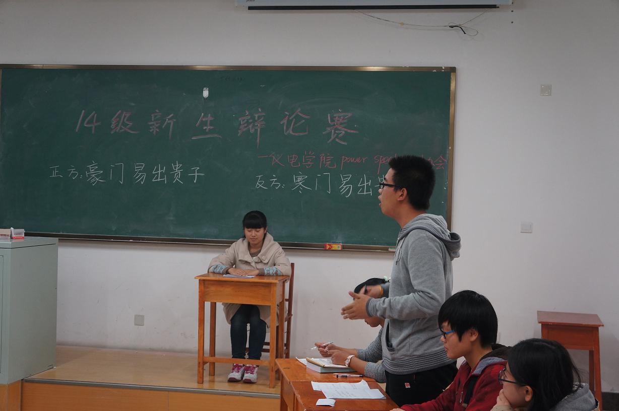 为积极备战suncitygroup太阳成集团第二十四届“先锋论坛”辩论赛,并选拔培养优秀人才,提升青年员工思辨能力和语言表达能力,由suncitygroup太阳成集团员工会举办的“先锋论坛训练赛”于2014年11月3日晚在李四光楼318教室举行。本场比赛由“Power Speaking”协会成员及历届辩论赛的精英辩手担任评委及主持人,辩题分别为“豪门易出贵子VS寒门易出贵子”和“no zuo no die VS no zuo no live”。