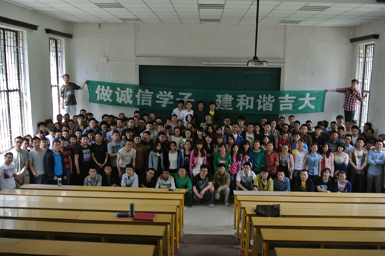 会上,首先由主持人徐倩为大家播放了“诚信、感恩”视频,并进行了诚信感恩主题演讲,她呼吁同学们要牢固树立社会信用意识,深刻理解良好的社会信誉在今后工作与生活中的重要作用,珍惜自己的信誉,认真履行还贷义务;在步入社会之前,同学们都应该认真地分析评价一下自己的价值观和人生理念,树立包括诚信在内的健康的价值观,把诚信这两个字刻进心灵的深处,用一生的言行去践行它。演讲结束后,同学们积极的参与了“做诚信学子,建和谐吉大”条幅诚信签名活动,表示自己会积极响应活动的号召,树立个人诚信形象,在与人诚信交往中互相理解,明礼诚信,严守公民道德,倡导良好社会风气。最后,王冕老师对本次毕业生年级大会做了总结,并宣布“感恩拥有,诚信未来”2014届毕业生系列活动正式拉开帷幕。