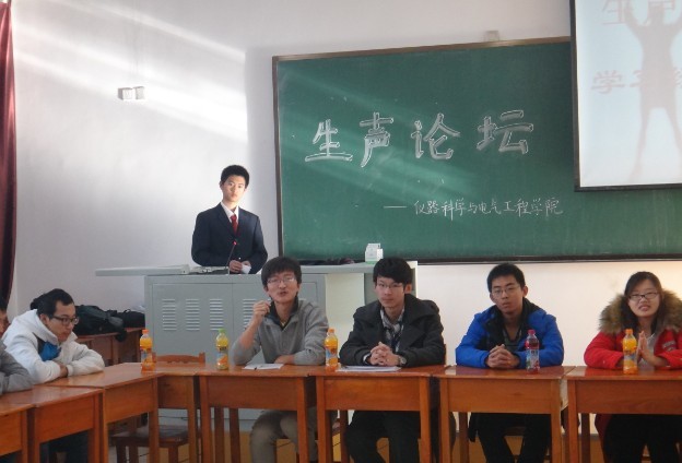活动于9:30准时开始,本期“生声论坛”的主题为学习经验交流。首先,主持人介绍了本期论坛内容和形式为互动交流、畅谈心声,鼓励大一年级的同学们要积极主动的向大二大三的同学提问题、讨经验。大一年级的同学们踊跃发言,提出了许多关于学习方法和考试技巧的问题。大二大三的同学们积极回应,大方坦承地分享自己的学习技巧和复习经验。经过热烈的谈论之后大家达成共识:想学好一门课程,需要首先掌握好基础知识,理论掌握之后再做好练习进行实战,并经常温习,循序渐进。此外大家还针对在生活以及员工工作方面存在的问题进行了讨论,比如应该如何平衡工作与学习之间的关系、如何做好员工干部等等。随后,院员工会副主席兼秘书部部长徐维同学发言,他鼓励同学们要信心百倍热情满怀的对待工作和学习,并希望同学们能够好好把握时间,努力学习,全心备战期末,书写属于自己的无悔青春!活动最后,同学们伴随音乐共唱《我要飞的更高》,至此本期论坛活动圆满结束。