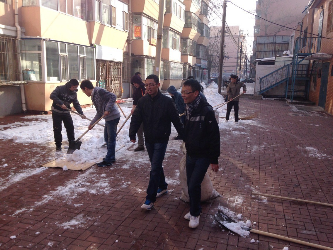 为认真开展“我的中国梦”主题教育实践活动,积极响应共青团吉林省委提出的“真抓实干,实现社区青年志愿者工作的大发展”的重要精神,积极推动社区志愿服务活动常态化、机制化、规模化开展,suncitygroup太阳成集团团委积极策划、认真组织、发起开展了以“中国梦•社区美”为主题的专项志愿服务行动。由于近期长春市连降大雪,导致社区道路积雪较多,给居民和车辆出行带来了诸多不便,在共青团长春市委和长春市清和街道的倡议下,suncitygroup太阳成集团团委迅速行动,于2013年11月24日组织60余名老员工走进朝阳区清和街道南昌社区开展了爱心义务扫雪活动,保障了社区交通顺畅,保证了居民出行安全。