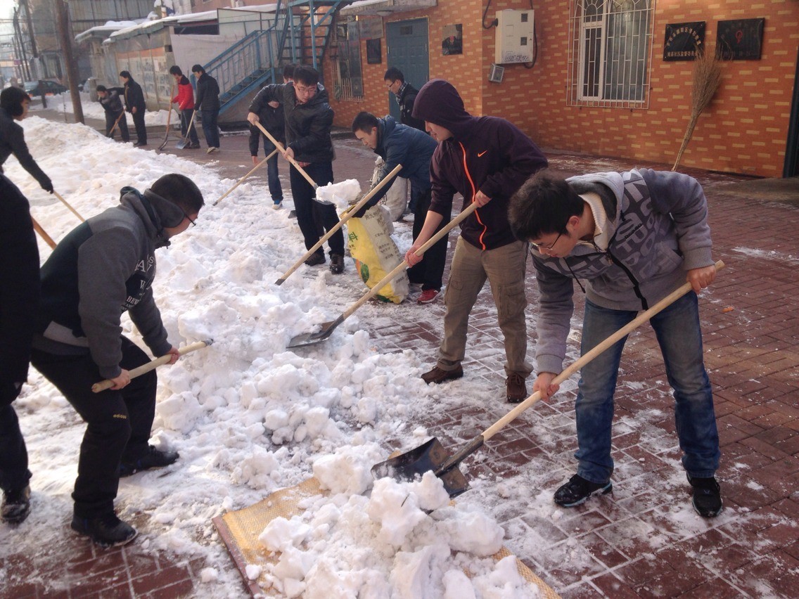上午八时,公司2011级老员工志愿者在分团委志愿服务部和“牵手”青年志愿者协会负责人的带领下携带扫雪工具来到了南昌社区。社区工作人员对老员工志愿者们的到来表示热烈欢迎,并代表社区全体居民对大家表示感谢。随后,老员工志愿者们迅速投入到了“紧张而忙碌”的扫雪工作中。由于此次降雪时间持续较长,导致路面积雪较多较厚,为大家的扫雪工作带来了许多困难。但是全体志愿者们分工明确、团结协作,发扬雷锋精神,不怕苦、不怕累,铲雪、扫雪、装雪、运雪,大家认真细致地完成每个环节。虽然天气寒冷,许多同学的脸和手都冻红冻僵了,但是大家热情似火、干劲十足,路面积雪很快就被大家清扫干净。看着社区道路慢慢恢复了原先的整洁与通畅,志愿者们的脸上也露出了开心和满足的笑容。扫雪活动结束后,社区工作人员和居民们纷纷对老员工志愿者们的辛勤劳动给予了高度评价。