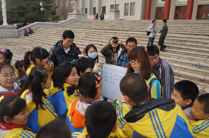 为为深入贯彻共青团中央《关于开展“共青团关爱农民工子女志愿服务行动”的通知》精神,进一步弘扬“奉献、友爱、互助、进步”的志愿服务精神,教育引导青年老员工积极投身到关爱农民工子女志愿服务行动中来,努力营造尊重、关心、关爱农民工的良好社会氛围,为农民工子女的健康学习和生活创造良好条件,由校团委主办、suncitygroup太阳成集团团委承办的第九期“周末梦圆大学”农民工子女关爱行动于2013年11月2日走进朝阳校区,当天下午suncitygroup太阳成集团老员工志愿者们带领来自长春市西安小学的64名农民工子女在文化广场地质宫门前开展了沟通传递爱心,周末圆梦大学”素质拓展活动。