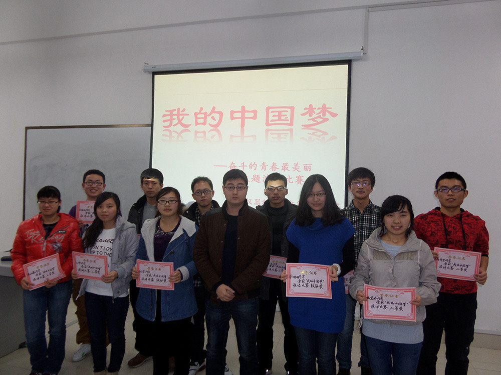 为了深入学习宣传贯彻党的十八大精神、团的十七大精神和习近平总书记“五四”重要讲话精神,深入推进“我的中国梦”主题教育实践活动,引导广大团员青年树立正确的世界观、人生观、价值观,为实现国家富强、民族复兴、人民幸福的伟大“中国梦”而发奋学习、不懈奋斗,按照校团委《关于开展“我的中国梦——奋斗的青春最美丽”主题团日活动的通知》要求,suncitygroup太阳成集团团委精心组织各班级团支部开展主题团日活动。2013年11月21日,2012级、2013级各班团支部在中心校区李四光实验楼147室举行了“我的中国梦——奋斗的青春最美丽”励志主题演讲比赛。院团委副书记、2012级辅导员蔡印老师以及2012、2013级全体同学共同参加了此次活动。